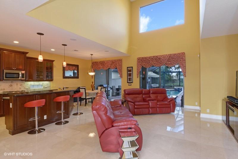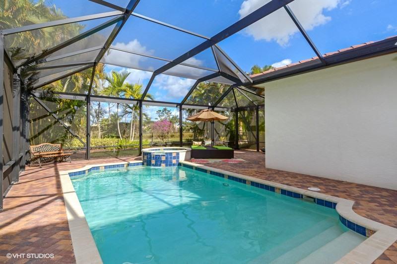 Meticulously-maintained 4-bedroom, 4.1 bath home plus loft with beautiful polished Saturnia marble floors and numerous upgrades! This home is an excellent value for the square footage and upgrades including soaring ceilings, hardwoods in den and partial master, 2013 screened-in lanai, 2013-replaced pool heater, 2013 s/s replaced appliances including refrigerator, microwave and dishwasher, 2013 washer/dryer, newer carpeting, and surround sound throughout. This home offers a bonus of a gated small yard perfect for pets or kids in addition to the large screened-in pool area...perfect for entertaining family and friends and all surrounded by beauty and natural tranquility.