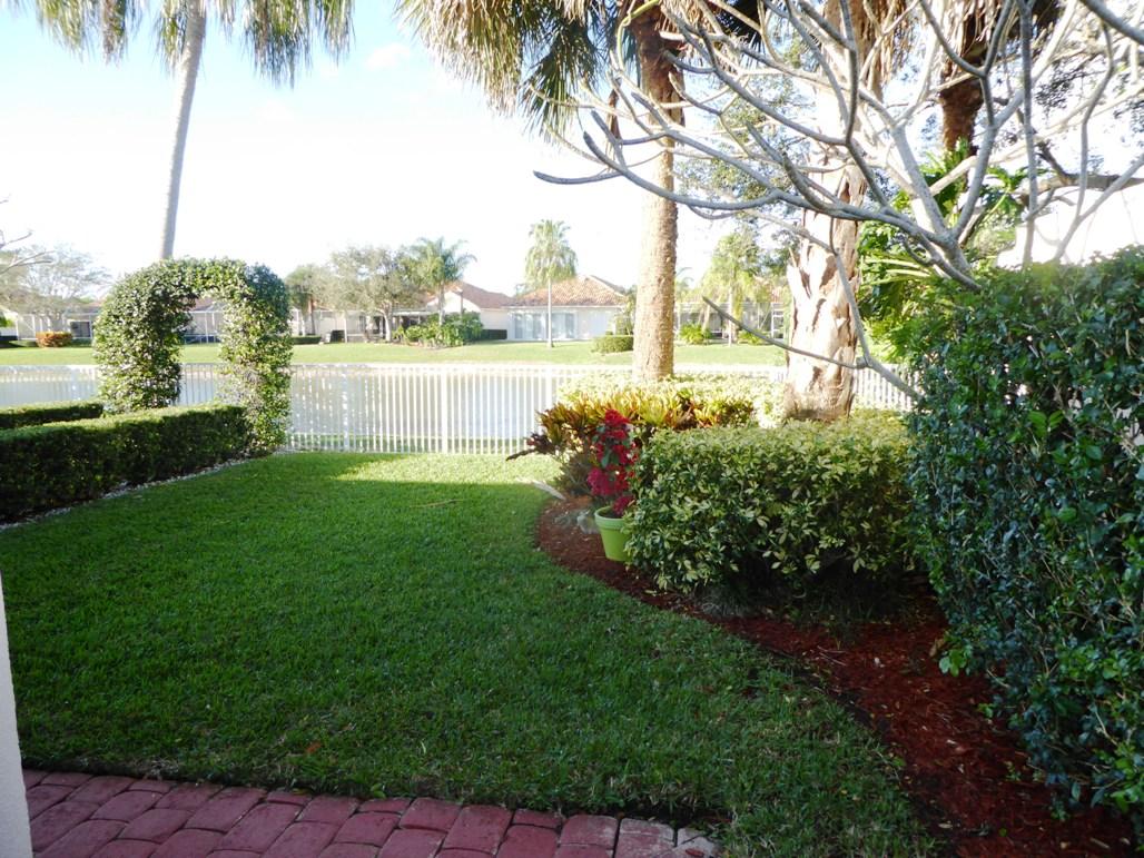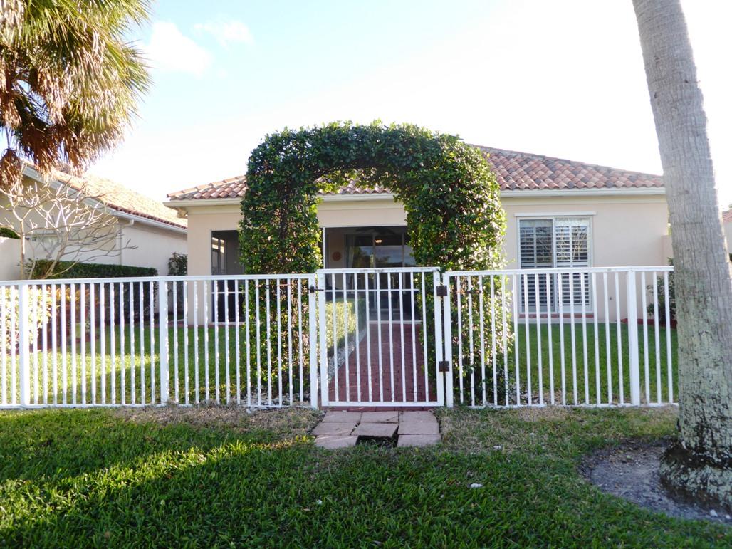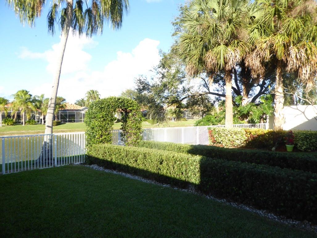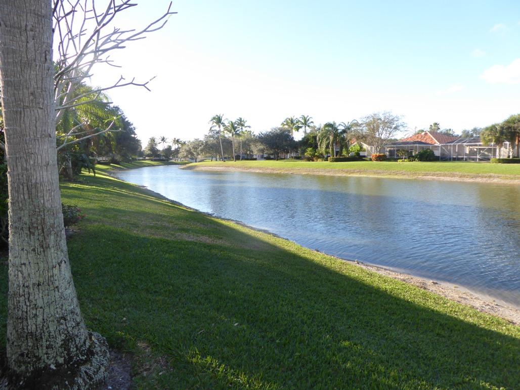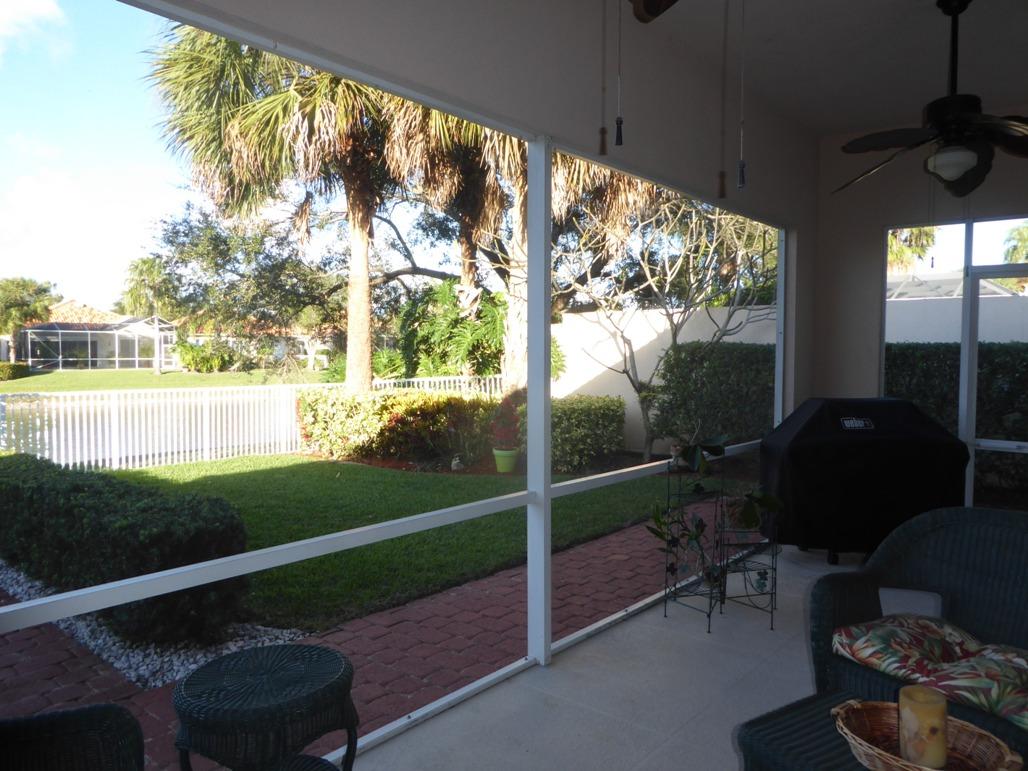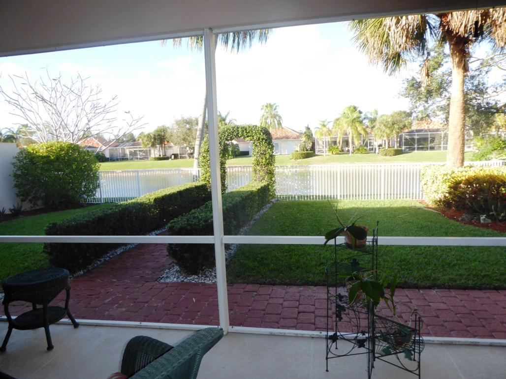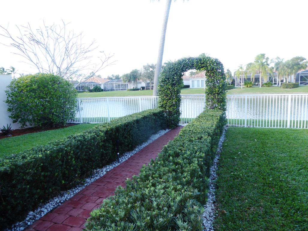 This is Truly a Unique Oakmont Model in RiverWalk! Here's Why! It has a Large Beautifully Landscaped Fenced Lakefront Garden with Manicured Shrubs, Privets, a Paver Walkway with A Gorgeous Arber overlooking the Water! It is Truly One-of-a-Kind! Reminiscent of The Hamptons! And this is just the Beginning! The Covered Entry is Surrounded by Flowering Plants & Tropical Palms & Leads to the Tile Foyer & Great Room both with Crown Moldings, A Full Wall Entertainment Center that has been updated to accommodate a Flat Screen TV, The Tile Dining Area with Crown Moldings & Sliders to a Secluded Patio & there are also 18 Feet of Sliding Glass Doors that lead to a 22 Foot Screened Lanai that overlooks that Exquisite Backyard! The Tile Kitchen, the Hub for Everyday Living or Casual Entertaining has