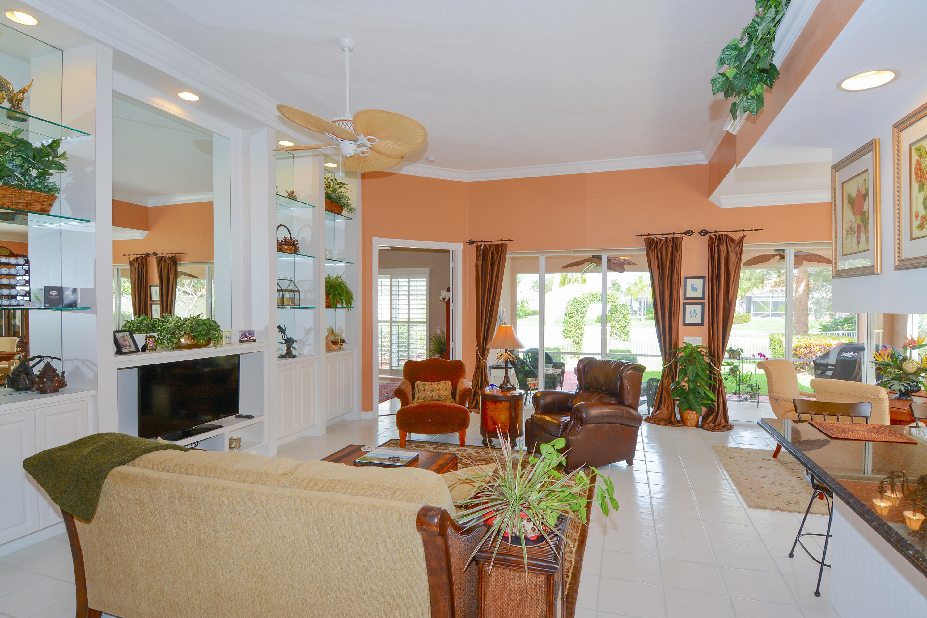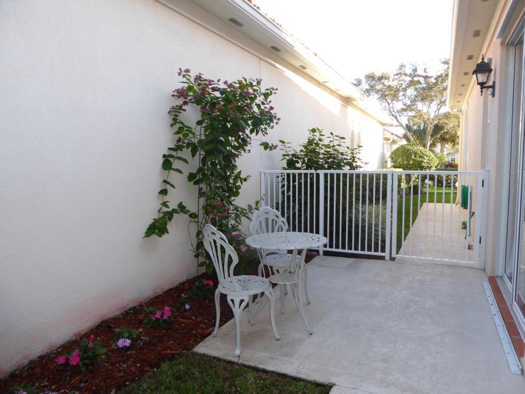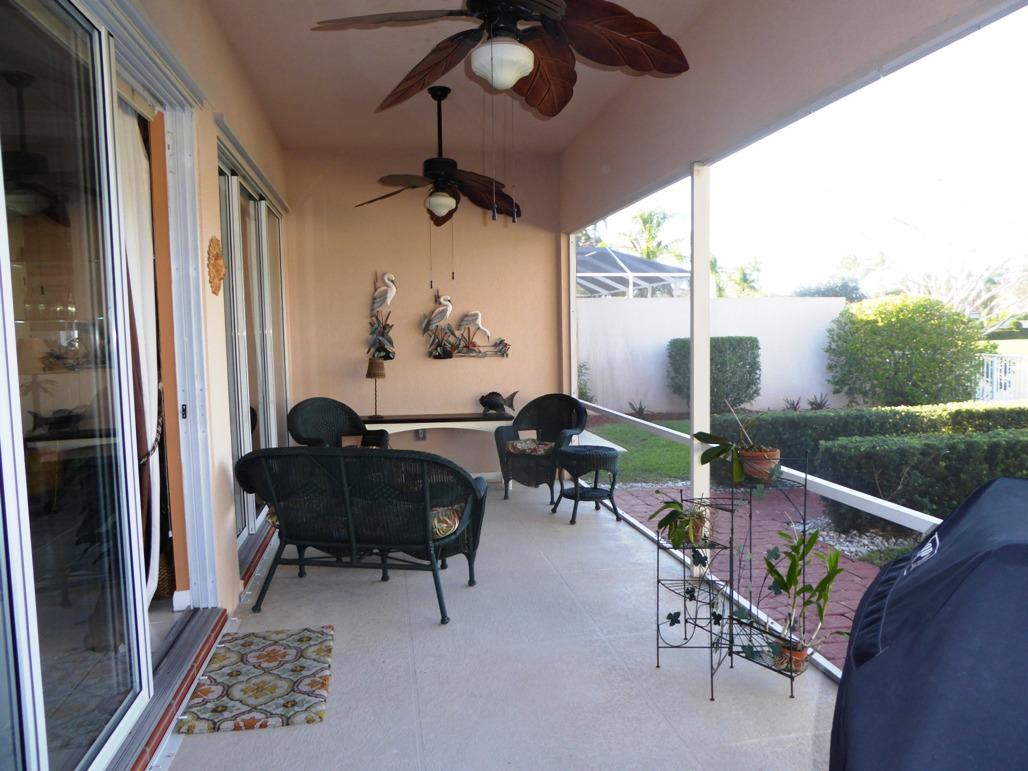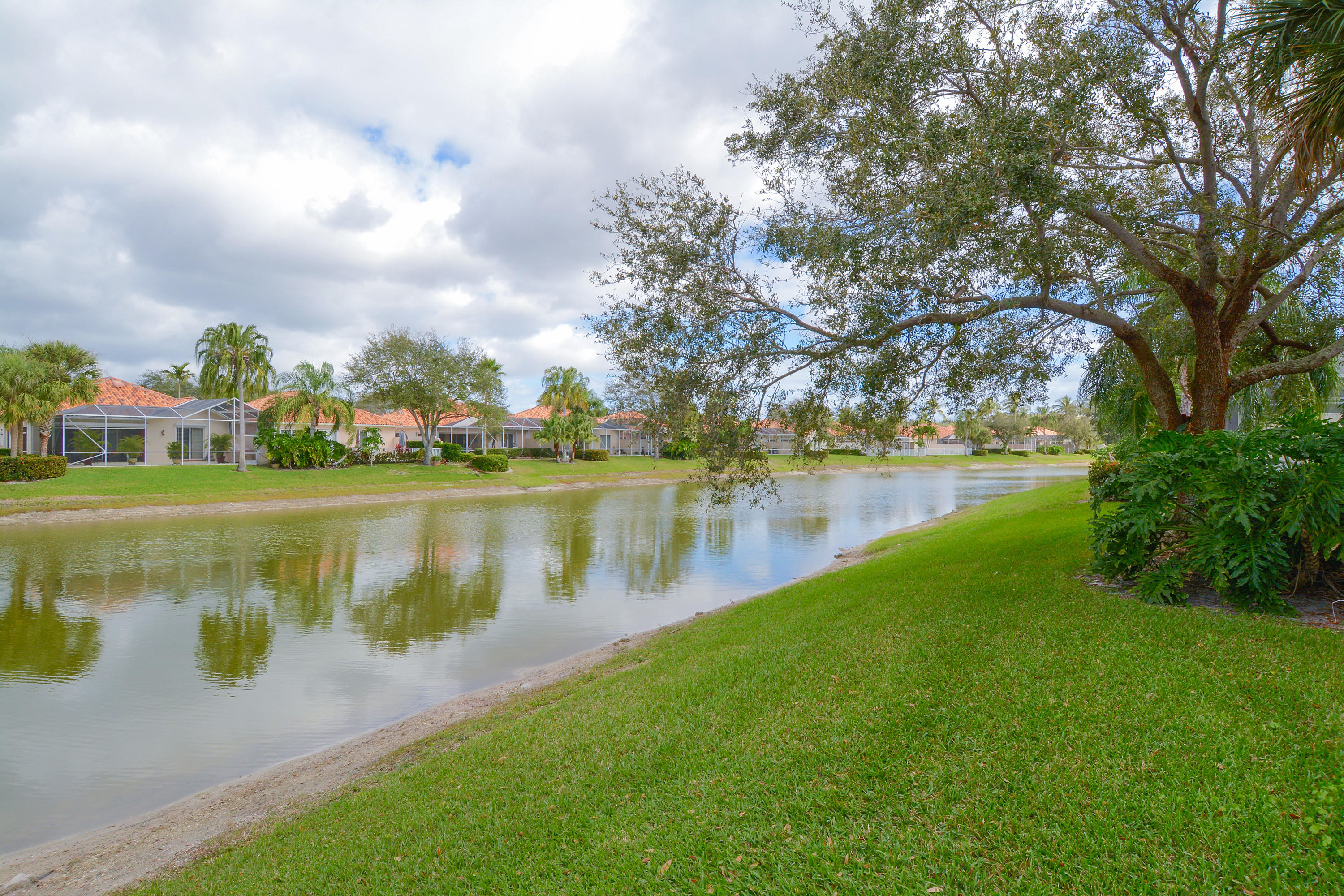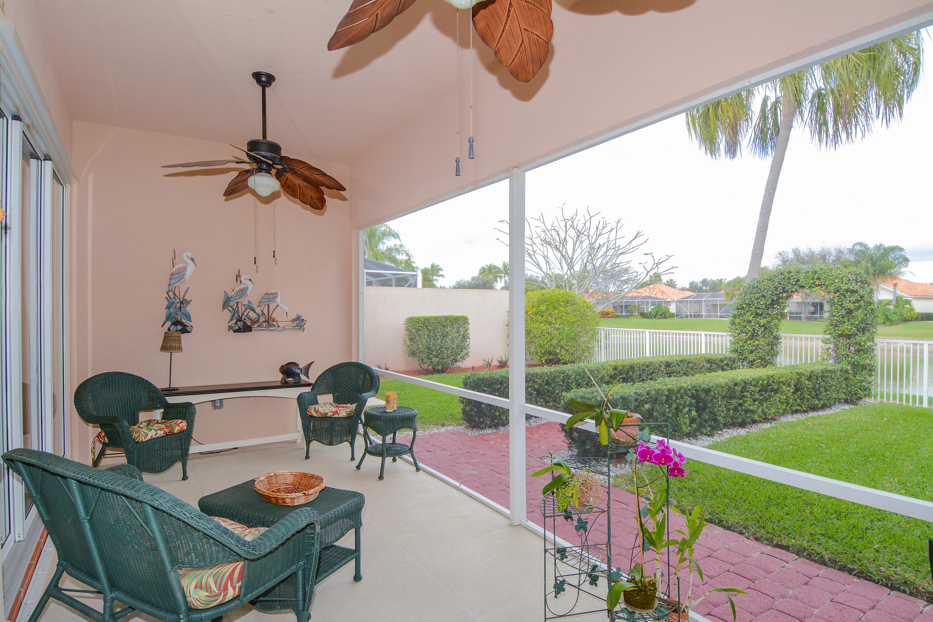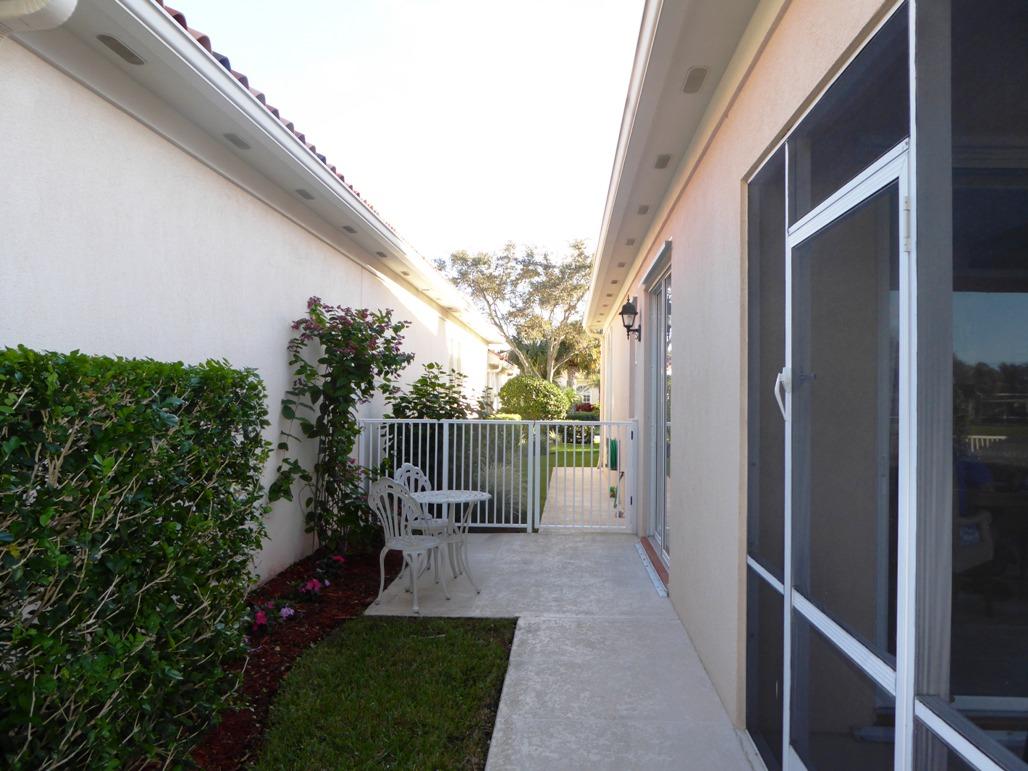 This is Truly a Unique Oakmont Model in RiverWalk! Here's Why! It has a Large Beautifully Landscaped Fenced Lakefront Garden with Manicured Shrubs, Privets, a Paver Walkway with A Gorgeous Arber overlooking the Water! It is Truly One-of-a-Kind! Reminiscent of The Hamptons! And this is just the Beginning! The Covered Entry is Surrounded by Flowering Plants & Tropical Palms & Leads to the Tile Foyer & Great Room both with Crown Moldings, A Full Wall Entertainment Center that has been updated to accommodate a Flat Screen TV, The Tile Dining Area with Crown Moldings & Sliders to a Secluded Patio & there are also 18 Feet of Sliding Glass Doors that lead to a 22 Foot Screened Lanai that overlooks that Exquisite Backyard! The Tile Kitchen, the Hub for Everyday Living or Casual Entertaining has