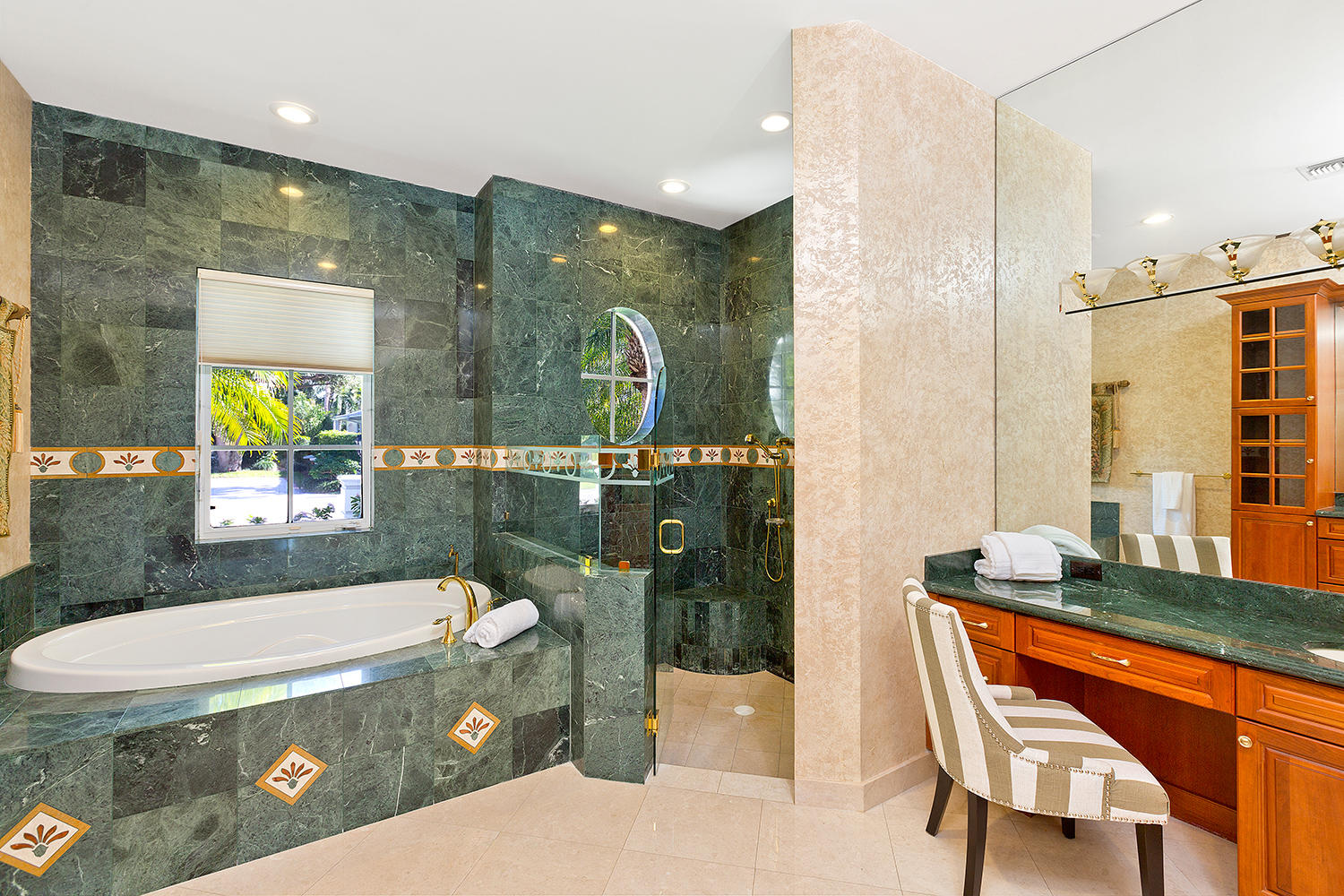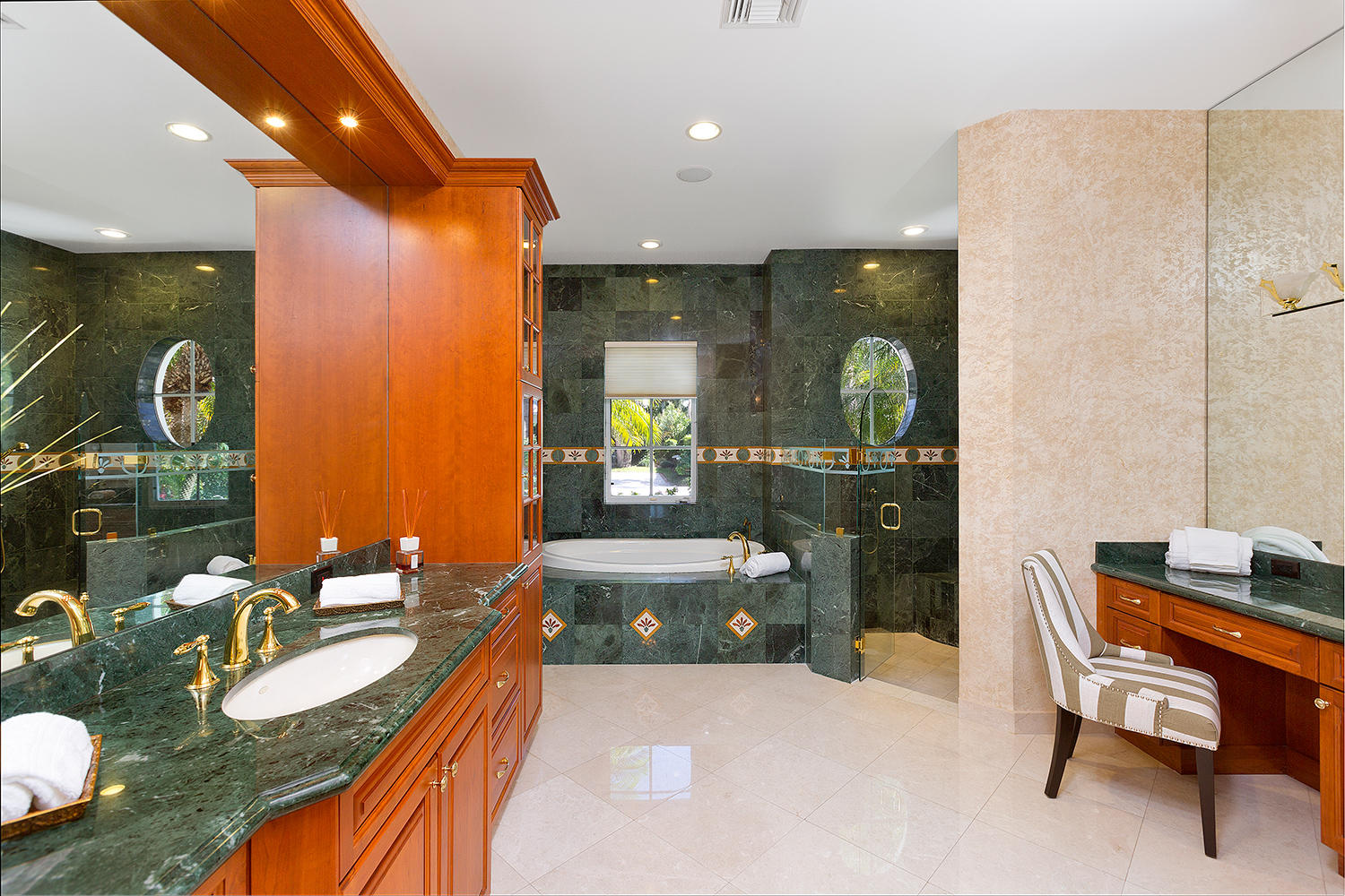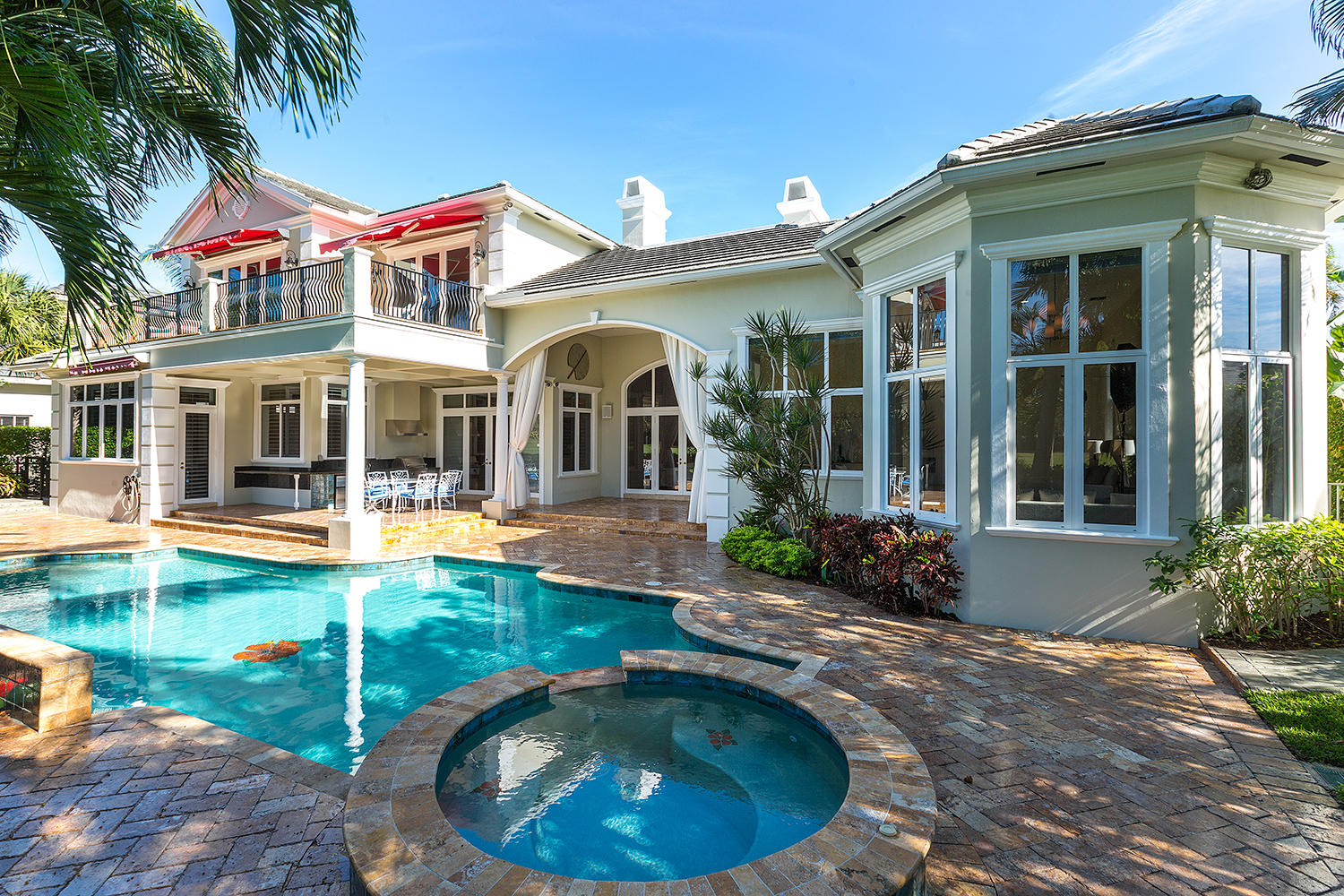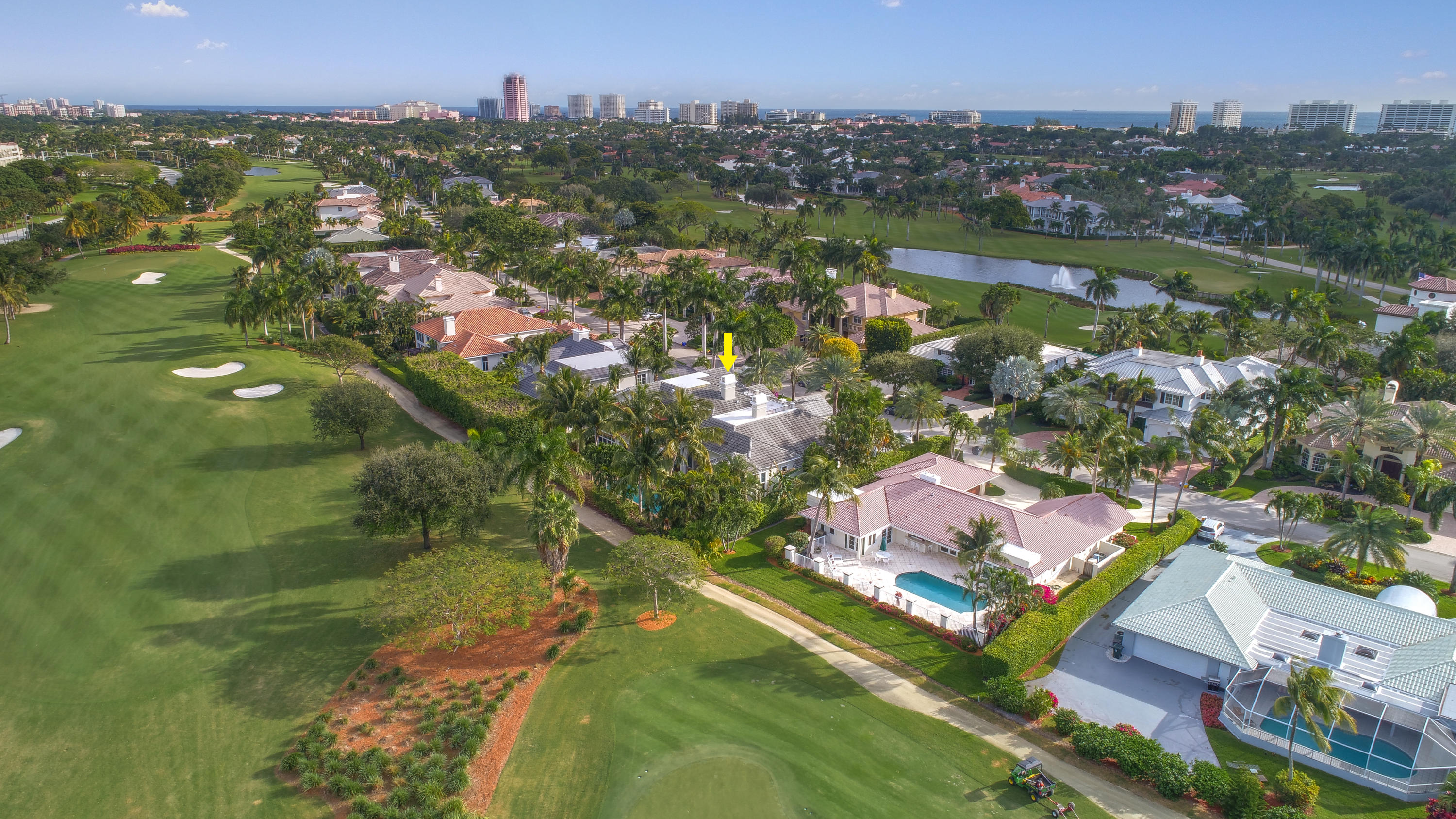 Exceptional value on the 12th fairway of the prestigious Royal Palm Yacht & Country Club golf course. This 5BR/5.5BA home has been maintained impeccably and features all of the ''must have'' features: natural light, soaring vaulted ceilings, private first floor Master suite with his and her baths, office, and first floor guest suite. Marble and Brazilian cherry wood flooring. All impact glass. Summer kitchen and outdoor living area is spacious and designed to maximize the Florida experience. Heated pool and spa with waterfall, marble pavers, and drape-flanked covered loggia. All upstairs bedrooms feature en-suite baths and ample closets. Upstairs junior Master features an over-sized terrace with 12th hole golf course views. Natural-gas generator, 4-zone A/C, 3-car garage. Built in 2002.