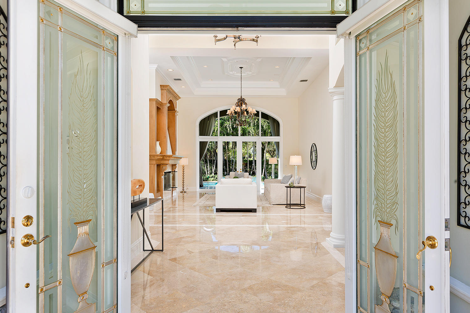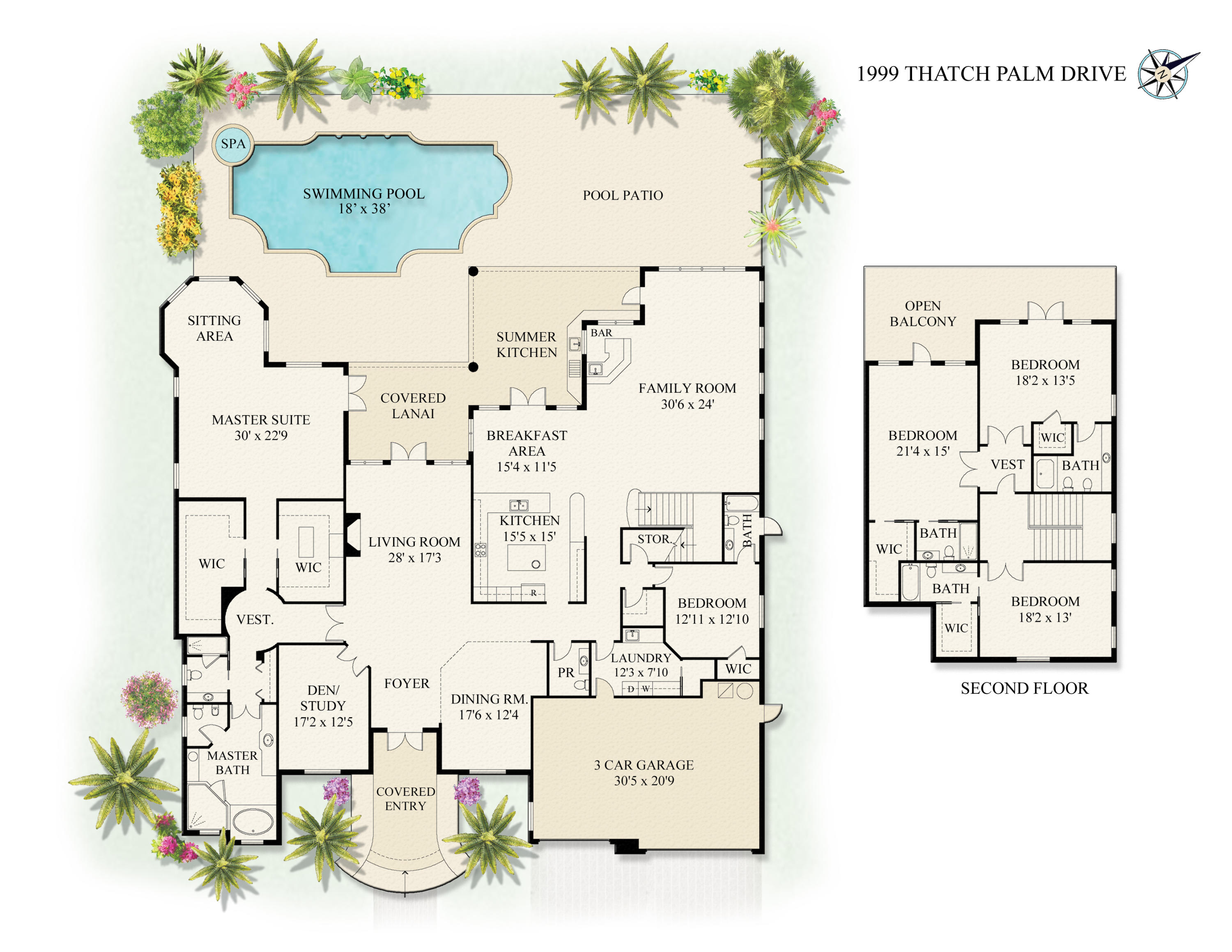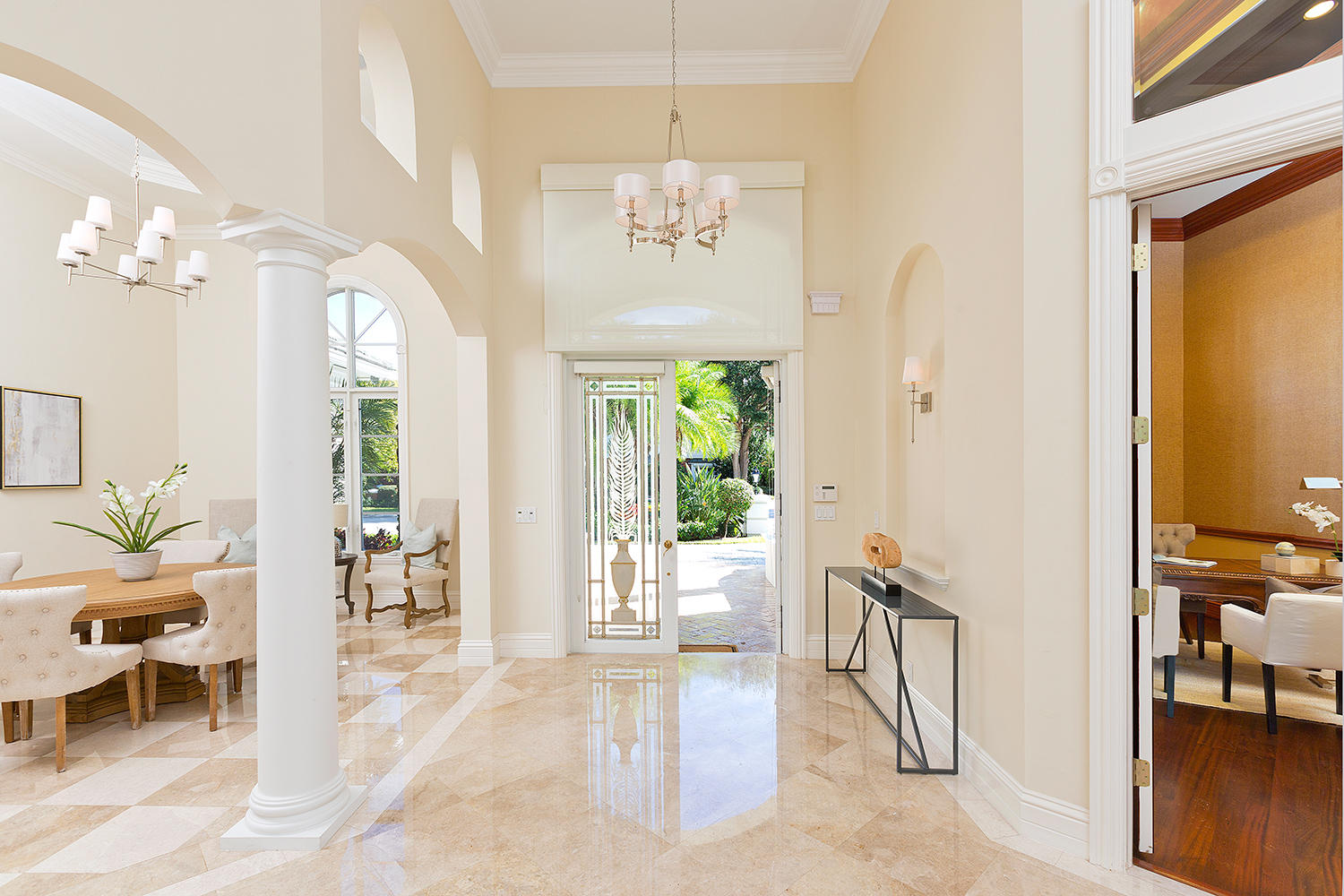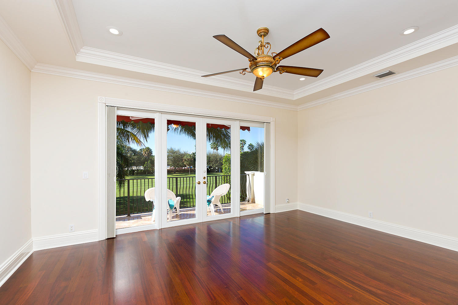 Exceptional value on the 12th fairway of the prestigious Royal Palm Yacht & Country Club golf course. This 5BR/5.5BA home has been maintained impeccably and features all of the ''must have'' features: natural light, soaring vaulted ceilings, private first floor Master suite with his and her baths, office, and first floor guest suite. Marble and Brazilian cherry wood flooring. All impact glass. Summer kitchen and outdoor living area is spacious and designed to maximize the Florida experience. Heated pool and spa with waterfall, marble pavers, and drape-flanked covered loggia. All upstairs bedrooms feature en-suite baths and ample closets. Upstairs junior Master features an over-sized terrace with 12th hole golf course views. Natural-gas generator, 4-zone A/C, 3-car garage. Built in 2002.