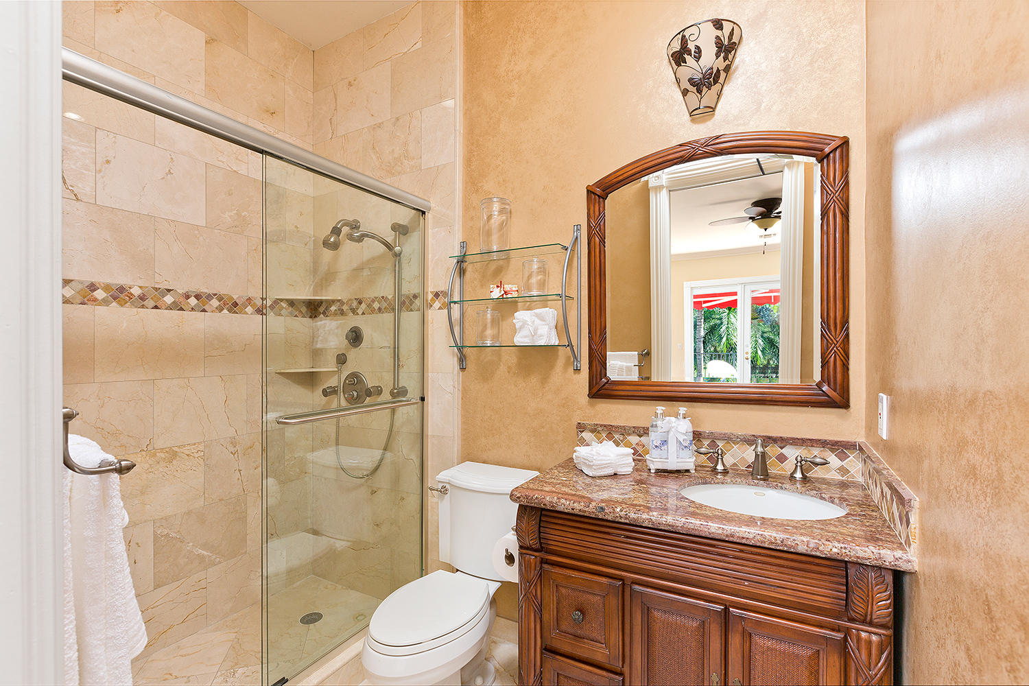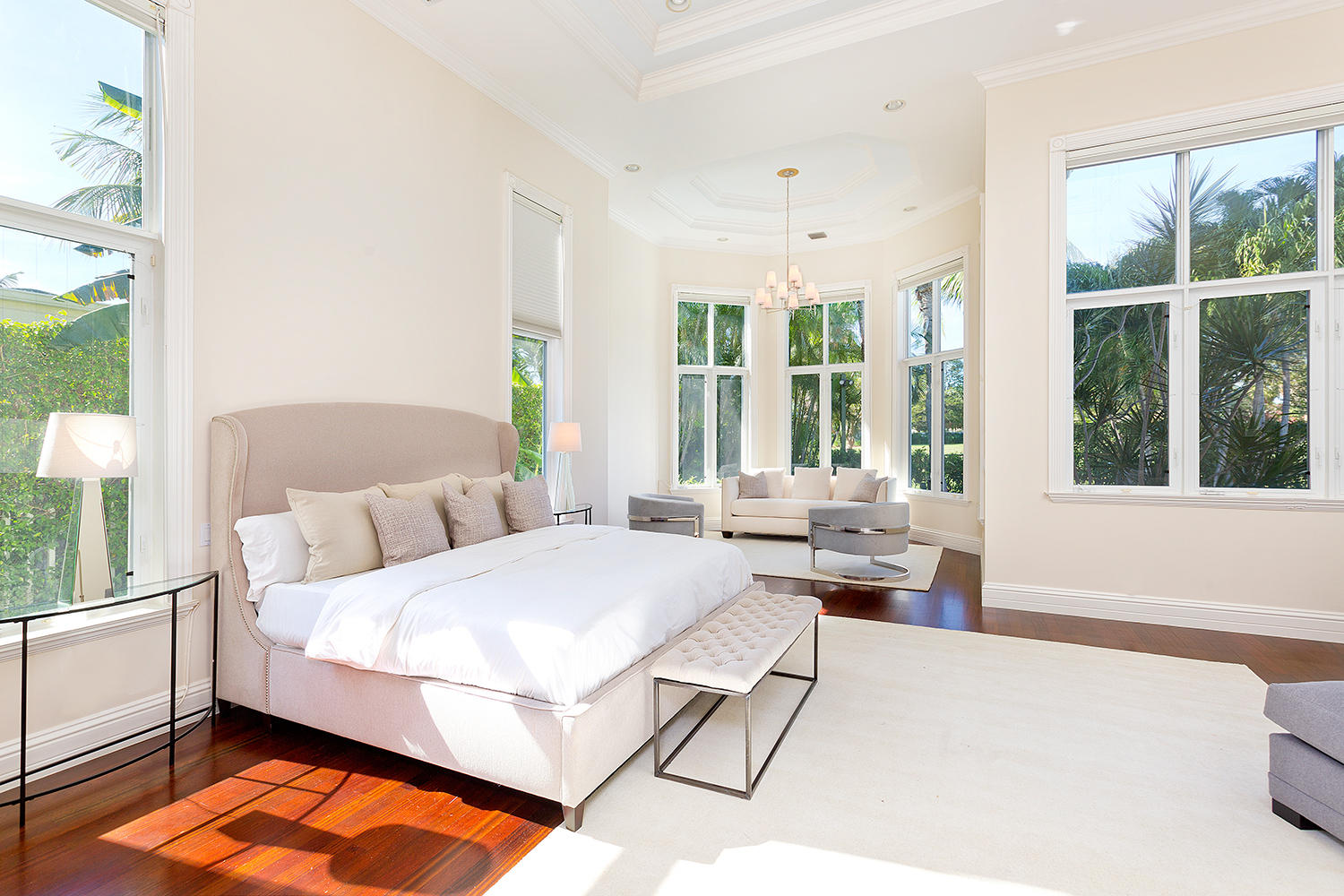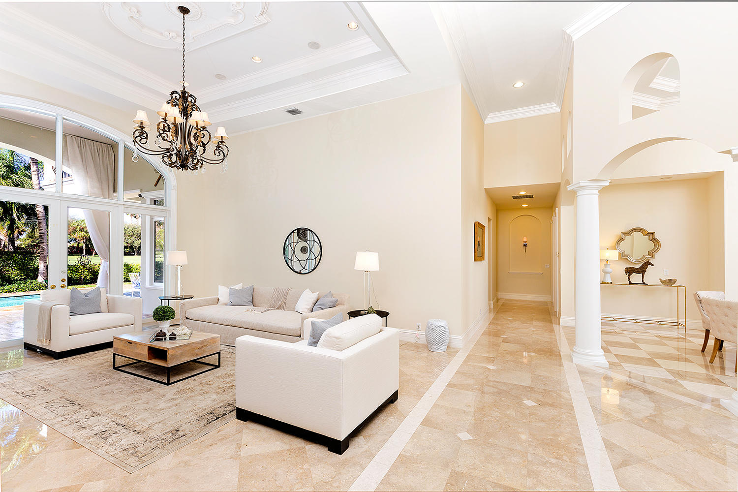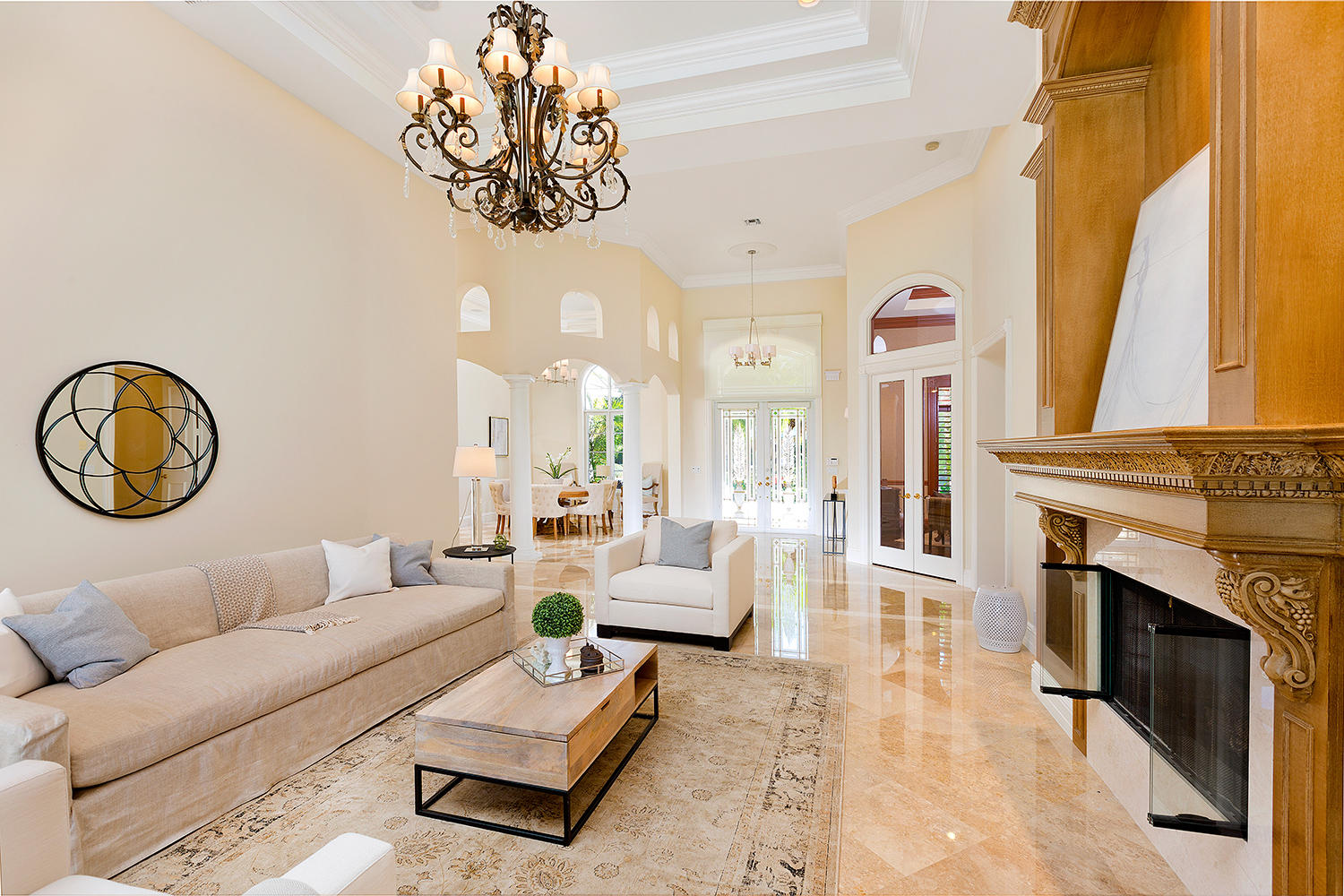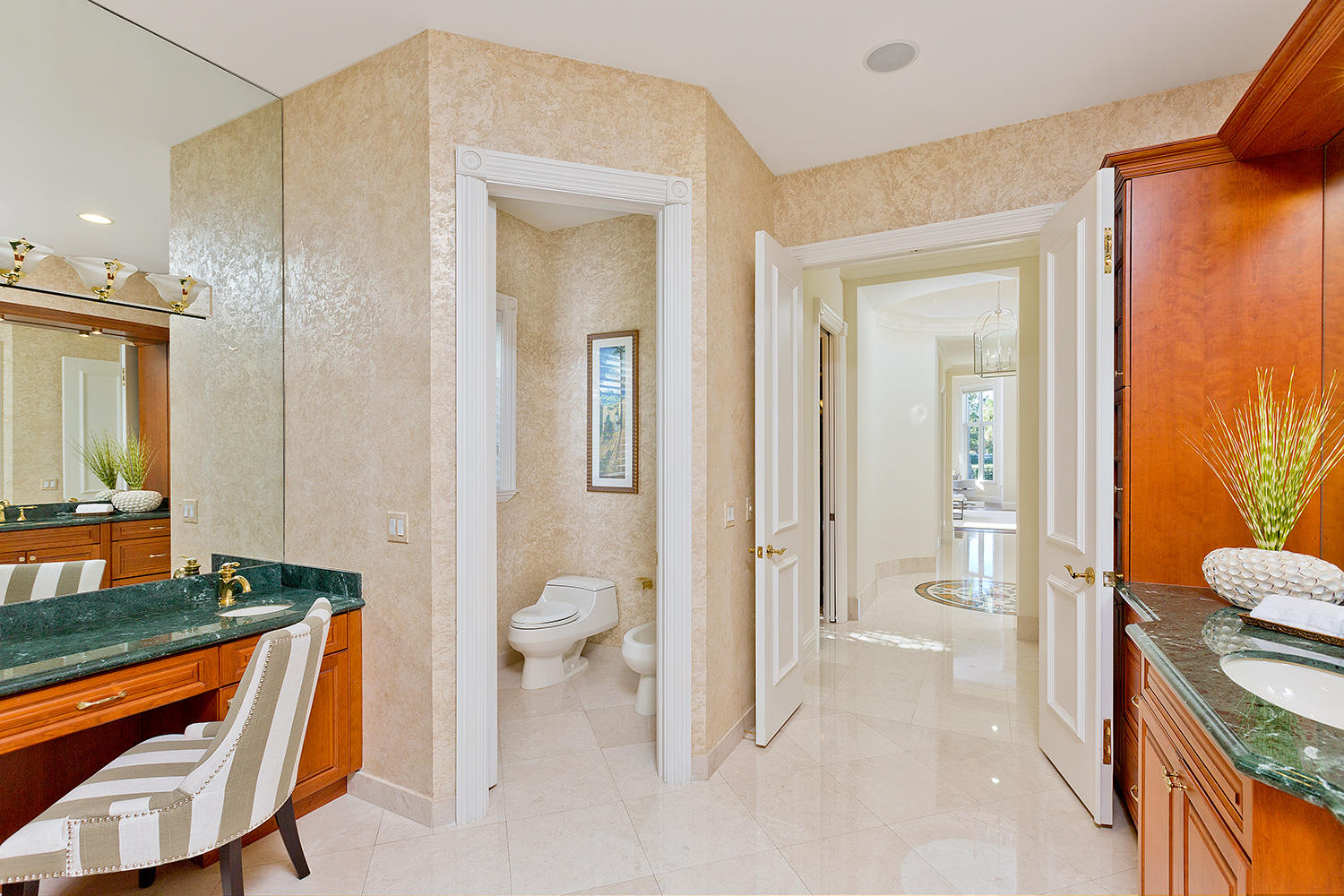 Exceptional value on the 12th fairway of the prestigious Royal Palm Yacht & Country Club golf course. This 5BR/5.5BA home has been maintained impeccably and features all of the ''must have'' features: natural light, soaring vaulted ceilings, private first floor Master suite with his and her baths, office, and first floor guest suite. Marble and Brazilian cherry wood flooring. All impact glass. Summer kitchen and outdoor living area is spacious and designed to maximize the Florida experience. Heated pool and spa with waterfall, marble pavers, and drape-flanked covered loggia. All upstairs bedrooms feature en-suite baths and ample closets. Upstairs junior Master features an over-sized terrace with 12th hole golf course views. Natural-gas generator, 4-zone A/C, 3-car garage. Built in 2002.