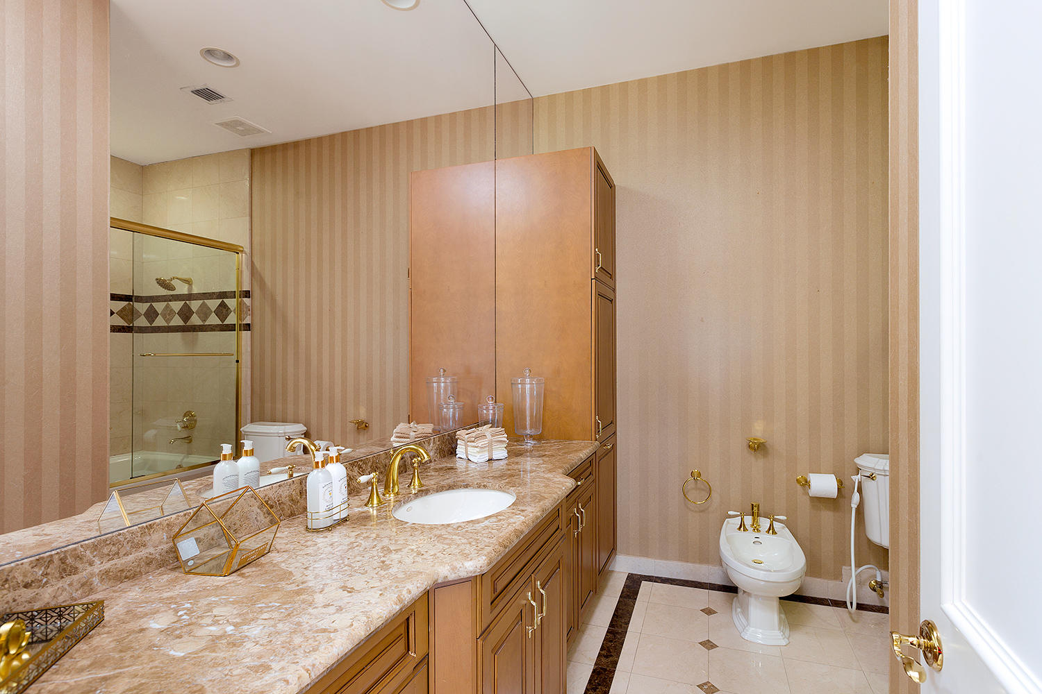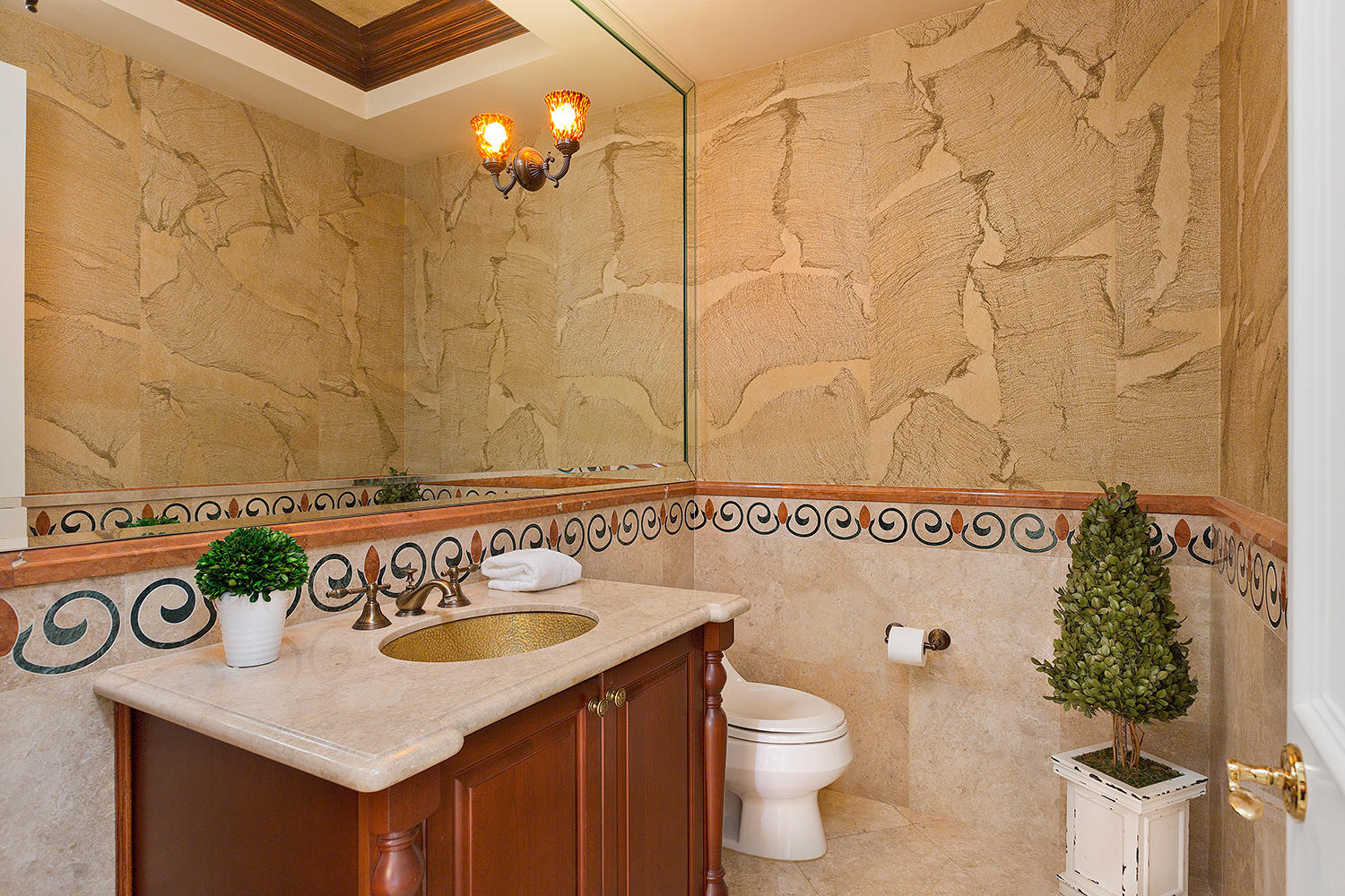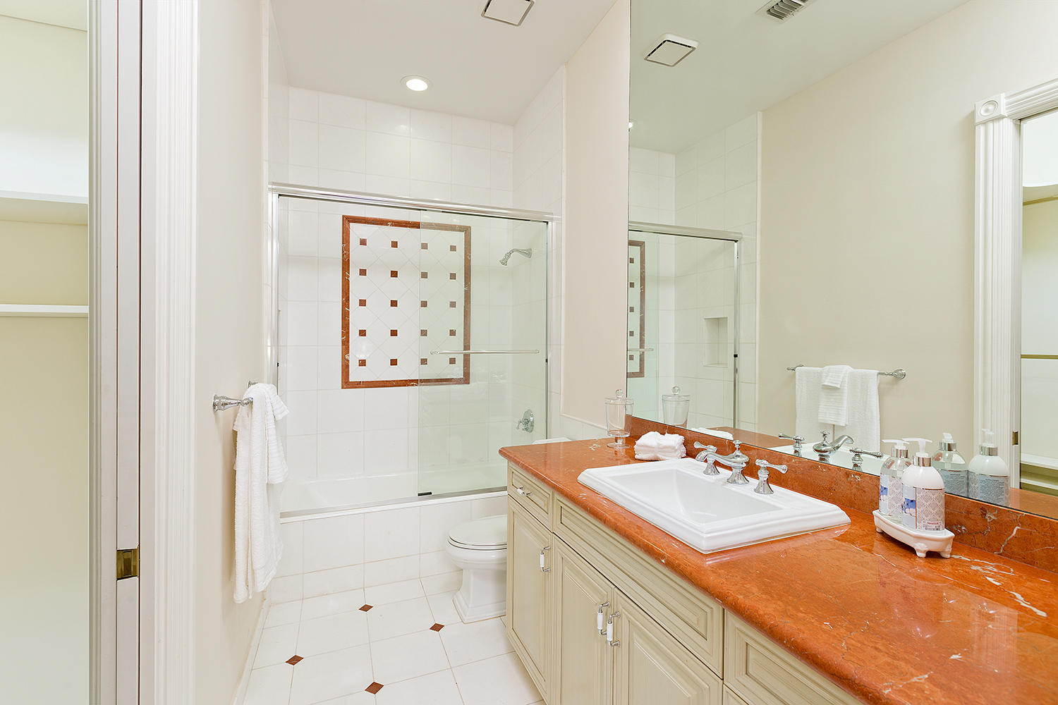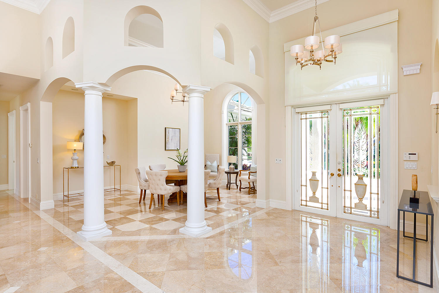 Exceptional value on the 12th fairway of the prestigious Royal Palm Yacht & Country Club golf course. This 5BR/5.5BA home has been maintained impeccably and features all of the ''must have'' features: natural light, soaring vaulted ceilings, private first floor Master suite with his and her baths, office, and first floor guest suite. Marble and Brazilian cherry wood flooring. All impact glass. Summer kitchen and outdoor living area is spacious and designed to maximize the Florida experience. Heated pool and spa with waterfall, marble pavers, and drape-flanked covered loggia. All upstairs bedrooms feature en-suite baths and ample closets. Upstairs junior Master features an over-sized terrace with 12th hole golf course views. Natural-gas generator, 4-zone A/C, 3-car garage. Built in 2002.