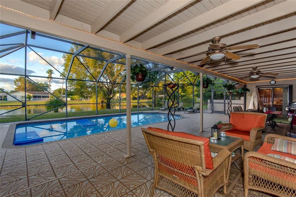 Wow this waterfront house w/ screened pool is the one !! 4 bed / 2 bath + 2 additional 1/2 baths !! Newer Roof and newer 2 zone A/C units !! Huge eat in island kitchen that opens to family room !! Tile floors throughout with and open floor plan great for entertaining !! Accordian Hurricane Shutters !! Amazing backyard with screened pool and beautiful long water views on a quiet street !! This house is a must see !!