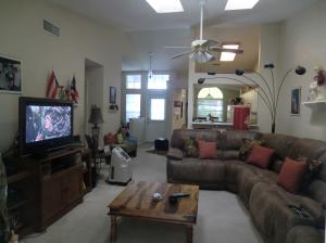 True 3-bedroom Plus Den house with 2-car garage that backs to deep forest. Tall cathedral/volume ceilings in living areas and master bedroom. Huge eat-in kitchen is 20-feet long, and has breakfast bar/pass-thru to living room. Covered and screened patio is 150-square-feet. Nicely landscaped in front and back. Master bedroom has walk-in closet, dual sinks, and large shower. Very private back yard, where owner has seen deer and wild turkeys. Roof replaced in 2005. All appliances and hot water heater and A/C and garage door have been replaced. Well-maintained gated community features swimming pool, bar-b-q and picnic area, plus playground. Seller will give $4,000 credit for carpet & paint.