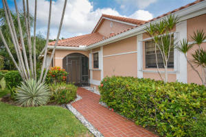 Immaculately maintained and tastefully updated 2 bedroom/2 bathroom, spacious corner villa with picturesque water views. Second bedroom has a private screen enclosed courtyard. This home features new roof, gutters and shutters in 2013, new garage door with opener and new hot water heater installed in 2015. New A/C, updated kitchen with granite counter tops, hurricane impact rear sliders, washer/dryer, renovated master bathroom, attic ladder and fan all added to home in 2008. Active clubhouse, pool/spa, tennis, billiard/card room, BBQ area & pier. Association states this is a 55+ community. PETS welcome!