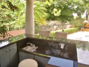 WELCOME TO YOUR OWN SHANGRI LA! Located on an over 1/4 acre incredible lot! When you are entertaining around the huge pool, magnificent Gazebo or special BBQ area your guests will think that they are in an intimate resort! This unique home sits on what is probably the finest and most impressive lot in all of Boca Pointe! The house has been quality updated in exquisite taste. This is a rare La Palma model with a green house wall family room off an impressive kitchen with unique Quartz counter tops. The master suite is on the first floor with an absolutely breath taking master bathroom with onyx counters and an amazing walk-in closet. There are 2 other master closets.2 upstairs large bedrooms share an over sized 2 sink bathroom and a loft.