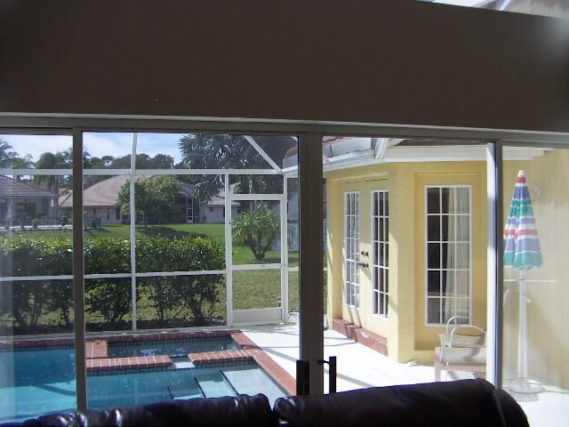 One story lake front pool home located on a cul-de-sac in desirable Carriage Point Estates. A 24 hour gated community. Stunning lake views. Interior features 4 bed/ 3 bath, SS appliances, tile in main living areas, wood and carpet in bedrooms, volume ceilings, lots of light, 7 year old roof and a family friendly neighborhood.