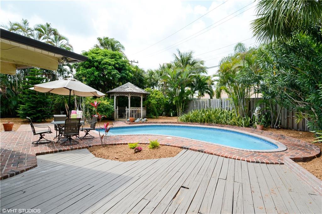It’s the amazing view of the huge lushly landscaped, very private tropical backyard. It’s the stunning swimming pool, the large gazebo and hidden tree house. It’s an evening WALK TO THE BEACH to watch cruise ships head out to sea, the comfort of a TRI-LEVEL home and the peace of mind that comes with living on a quieter, limited traffic street. It’s a wood burning fireplace. A fabulous custom built-in bar And enjoying the ever-so-special, very “real" neighborhood life of Harbor Inlet!