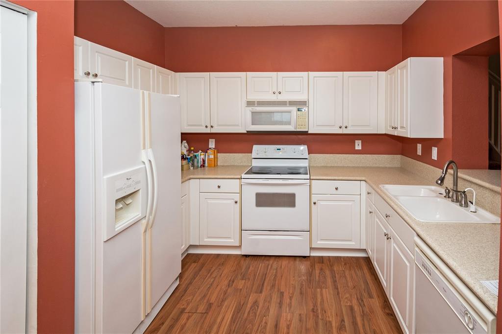 WOW! Rare 3/2.5 PLUS LOFT for 4th br/den on water. Volume ceilings & wd flrs in living area, shows like a single fam HOUSE, spacious eat kitchen w/updated appliances, breakfast bar, large cabinets. The huge master downstairs offers a priv. bath w/roman tub & sep shower. Laundry rm, 1/2 bath downstairs. Loft and 2 brs and 1 full bath upstairs. Hurricane shutters, newer A/C and carpet in all bedrooms, screened patio & fenced yard. Pristine gated comm has 2 pools, exercise room, clubhouse, tennis & LOW HOA!