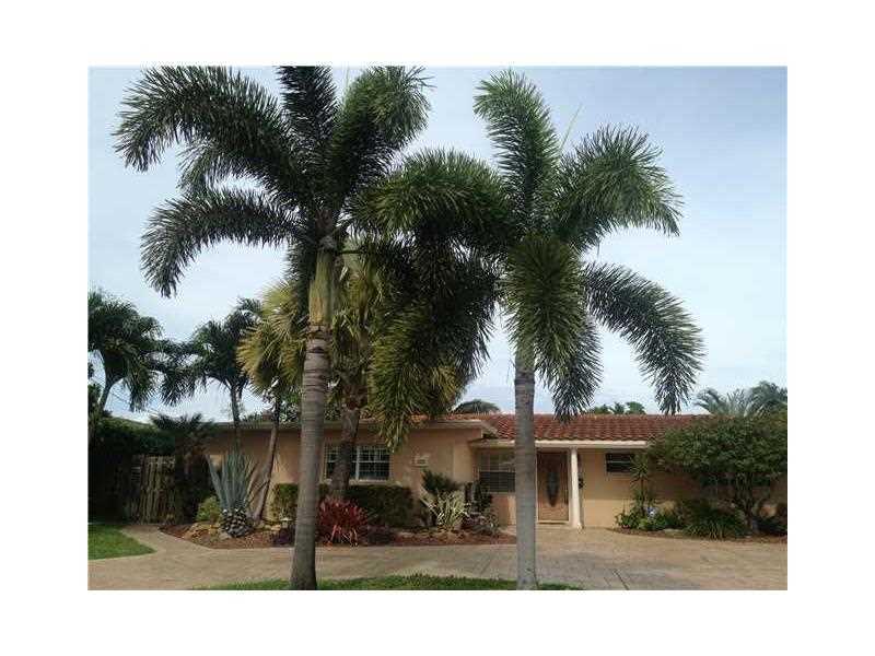 Florida living at it's best. Beautiful tropical landscaping, SE breeze, private dock with davits, electicity and lights, waterfront view, ocean access, freeform pool and spa, large covered outdoor patio and paved pool deck.Modern SS kitchen and appliances , new flooring, plantation shutters, french doors, and seperate patio area off of kitchen.Conveniently located in NE Fort Lauderdale between I-95 and US1. Close to shopping, schools, hospitals, restaurants, etc.