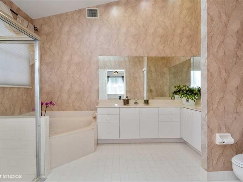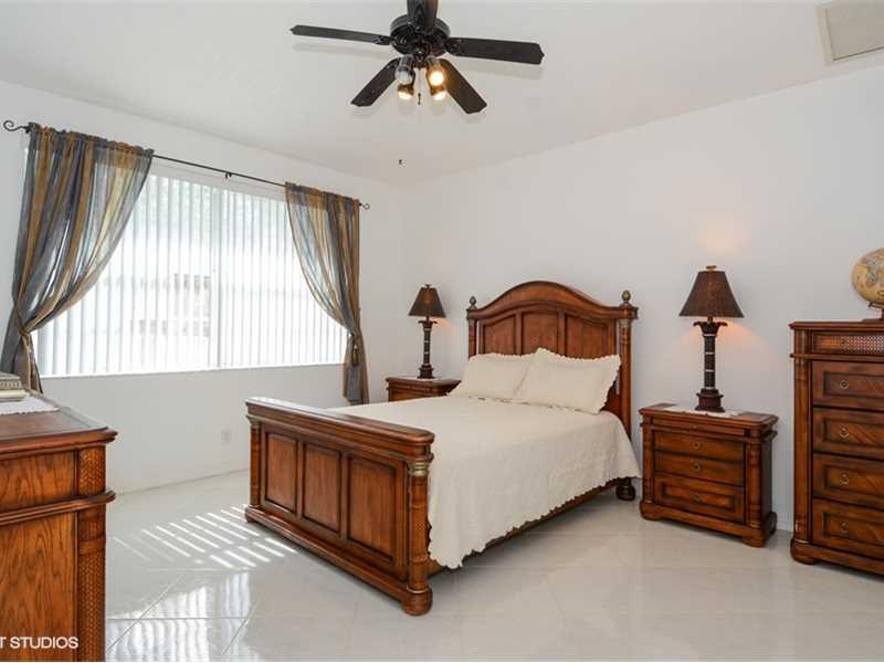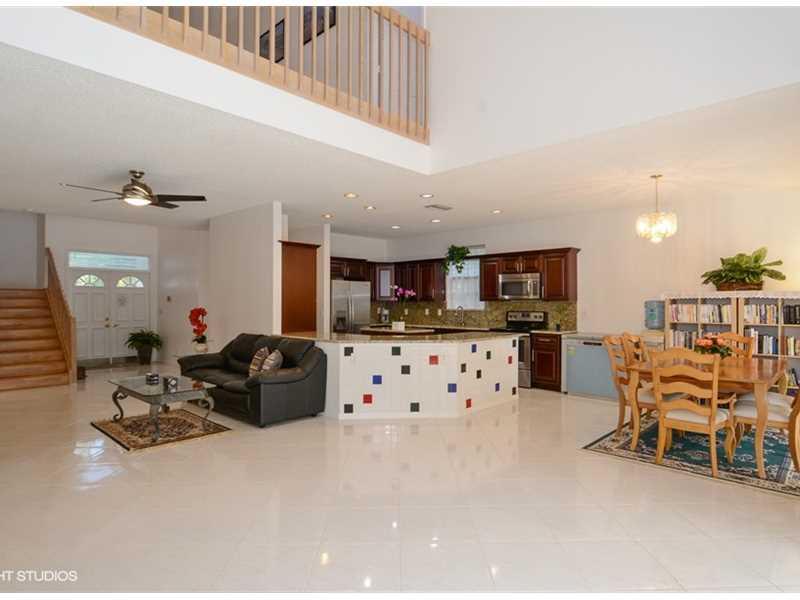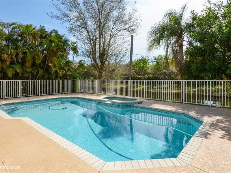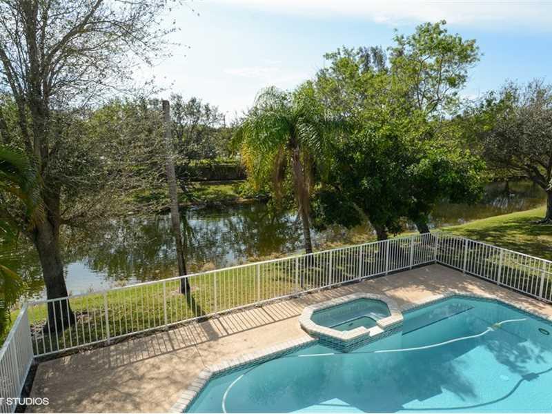 4 bedroom split plan, huge loft upstairs/2 bedrooms & 2 baths. South facing romantic balcony overlooks water & pool. Newer roof, accordion hurricane shutters. Landscape & lawn in HOA. Remodeled kitchen, all wood cabinets, stainless steel appliances, granite, island & pantries. Great room open floor plan. Hi ceilings. Laminate on 2nd floor, tile on diagonal 1st floor. Large covered screen patio, fenced pool. Across from green space & extra parking. Wonderful guard gated community with great amenities.