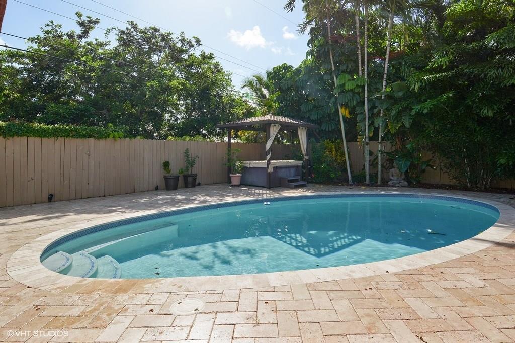 Unique split-level home in the heart of Coral Ridge & sought-after Bayview school district! Features include a spacious great room w/wall of sliding glass doors overlooking private pool area, updated eat-in kitchen w/built-in wine cooler, and huge 2nd floor master suite w/sitting area & walk-in closet. Two 1st floor bedrooms have Bamboo floors & direct access to patio/pool. Prime corner lot offers circular paver driveway & additional side driveway w/2-car garage. Not your typical "cookie cutter" home!