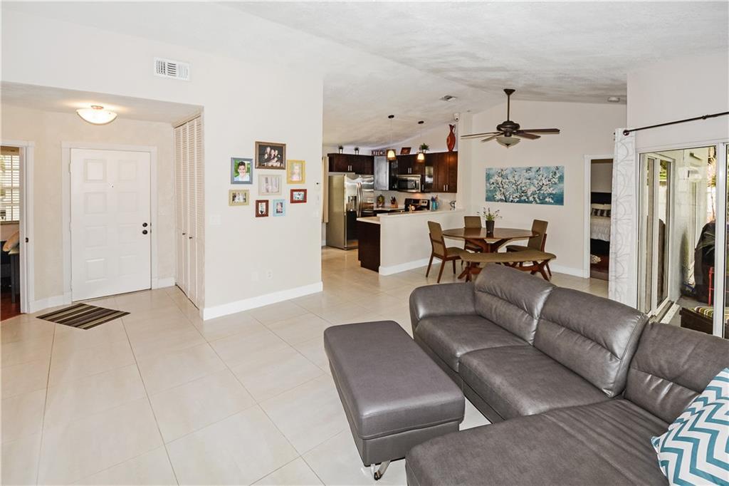 Don't miss out on this great opportunity to move into west Plantation in Jacaranda. Quiet community; perfect for families. Located on a cul de sac, this home is move in ready; everything has been updated in the last few years! Immaculate 3/2, with a 1 car garage; split floor plan, ensuite and walk in closet in master bed room. Stainless steel appliances, tile in main areas, laminate in bedrooms, and vaulted ceilings. Extra storage offered in outside shed and overhead garage shelving. Community pool.