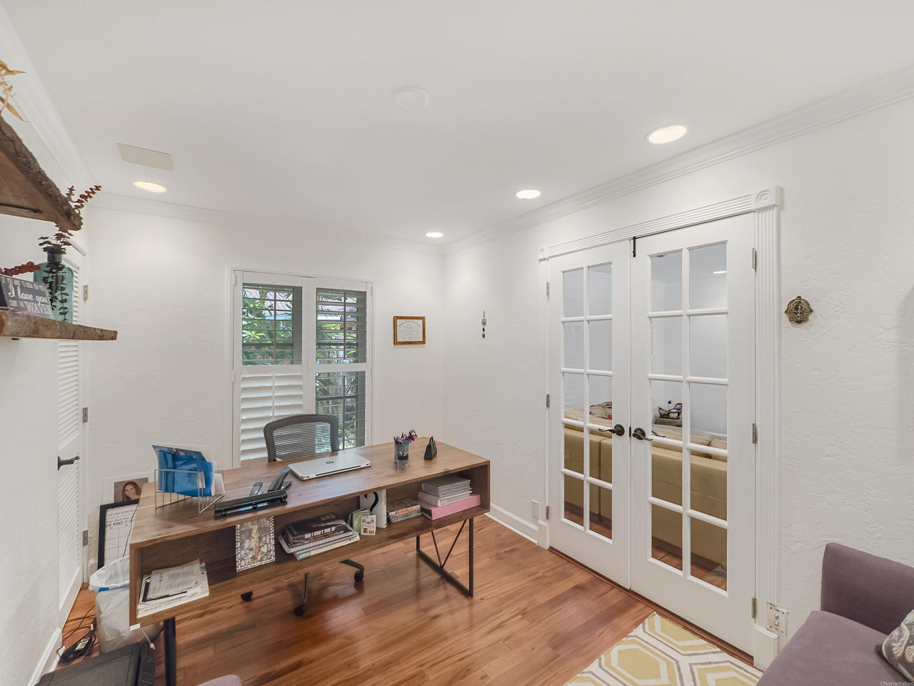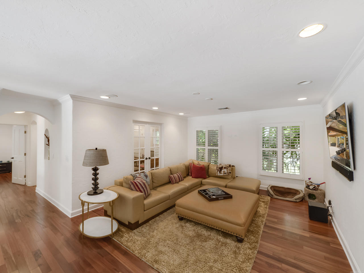 Stunning historic style home in Old Floresta. Spanning over 3,000 square feet, the home features 4 bedrooms, an office and 3.5 bathrooms with a wonderful split bedroom layout. Most of the bedrooms and living areas of the home lead to the outside via french doors. The bathrooms are updated and the home has Tiger Wood through the living areas and bedrooms. The property is nestled with a private front and back yard with lush landscaping throughout including over $100,000 in palm trees. Call us today for your private showing.