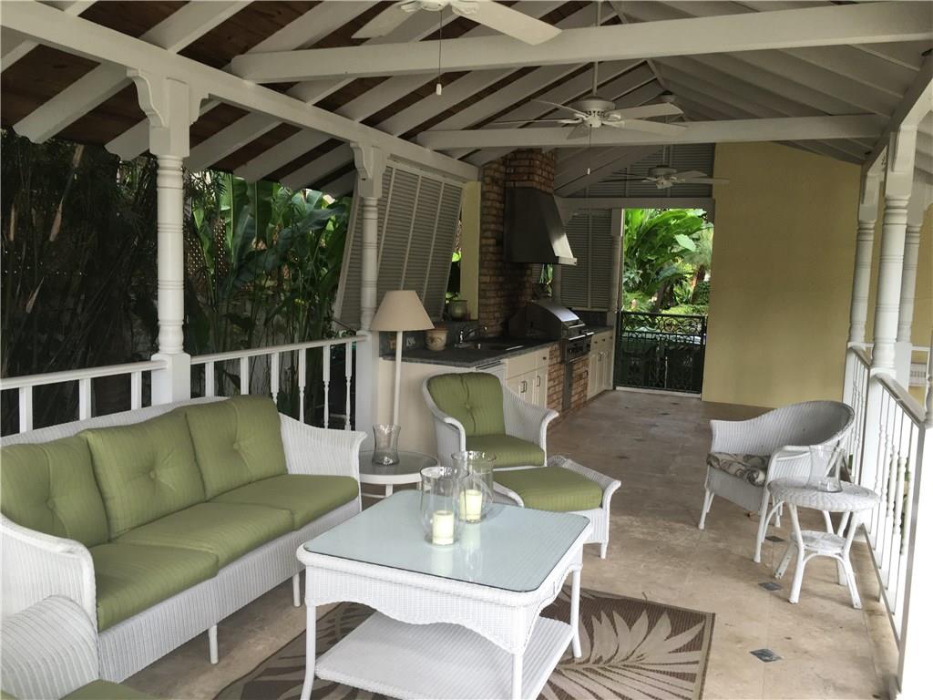 Authentic Key West styling offers the perfect tropical deepwater retreat! Covered porches & an oversized loggia creates an outdoor living/dining room with Summer Kitchen. Expansive rooms & extremely open water facing chef's kitchen (Subzero & Viking) adjoins family room. Living room with red oak floors & fireplace, Plantation shutters add island ambiance. One Bedroom Suite on first level (great guest/in-law)& 2 spacious water facing Master Suites upstairs. Lush established landscaping for total privacy!