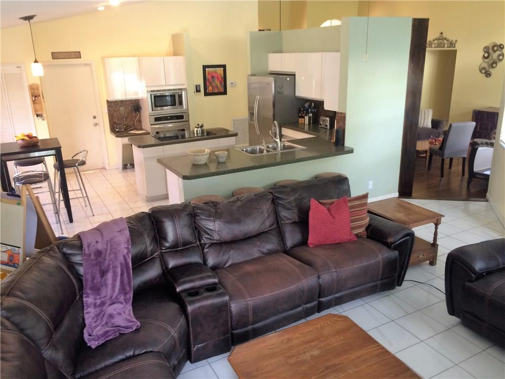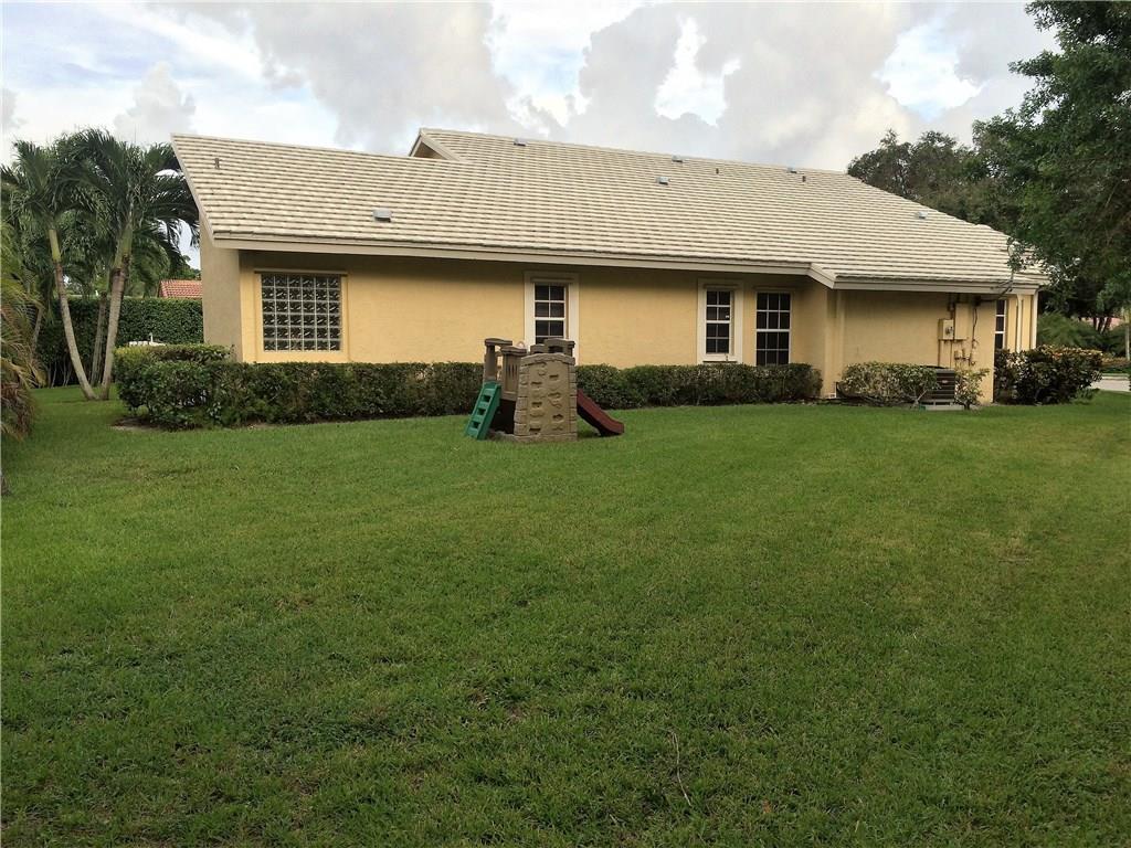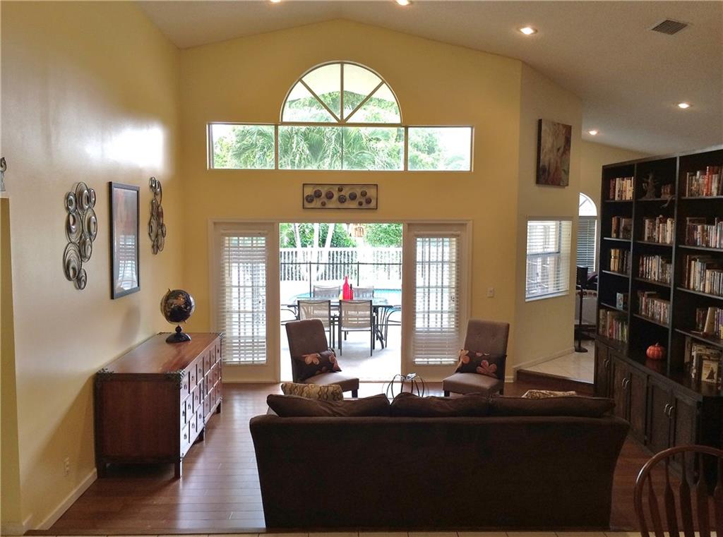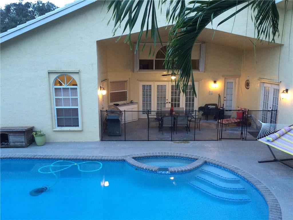 Spacious pool home in charming Eagle Trace. Large inside corner lot on cul-de-sac in safe, quiet community. 4 bedrooms, 2 full baths with pool access. Sunken living room, built-in bookcase, formal dining, open-concept family room/kitchen. French doors to pool from master, living, family rooms. Unique windows bring in lots of light. Wet bar in covered pool deck area. Pool resurfaced 4/16; new twin-unit a/c system installed 5/15; tiled roof post-Wilma. Your chance to put your loving touch on solid home.