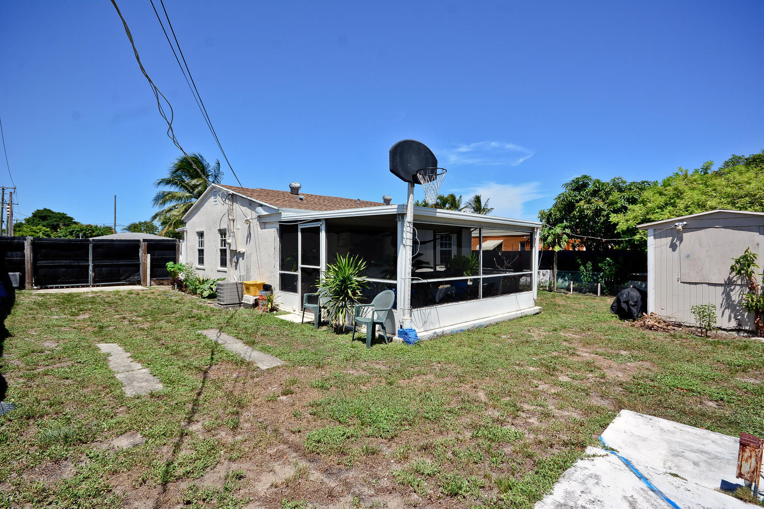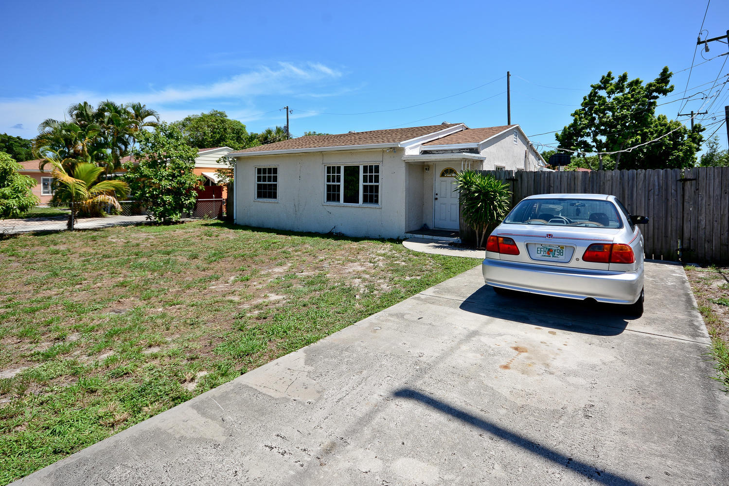 Two bedroom one bath home close to downtown West Palm Beach, schools, shopping and restaurants. Open floor plan. Clean and well maintained. Tiles throughout. Central A/C. Large screened in patio in the back. Fully fenced yard. Great opportunity in this area, a must see!