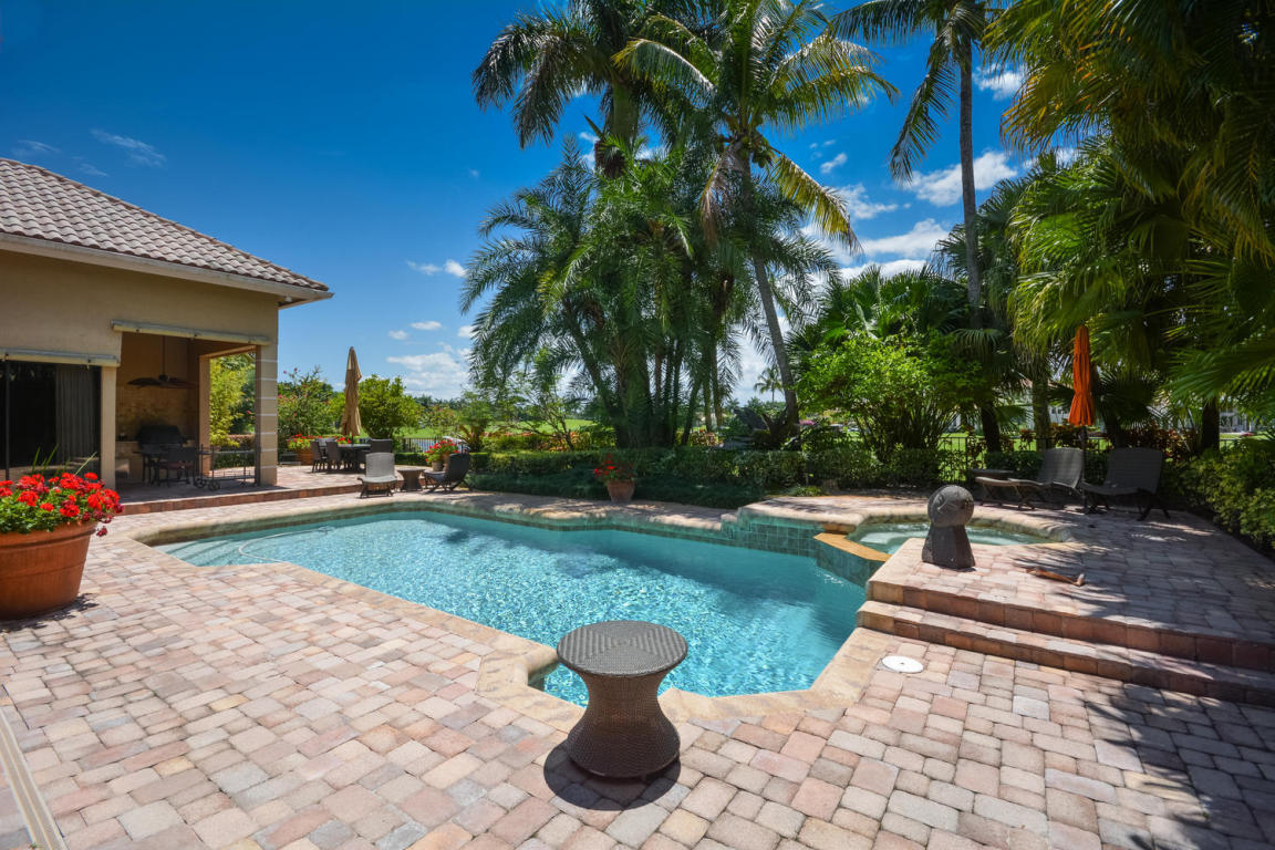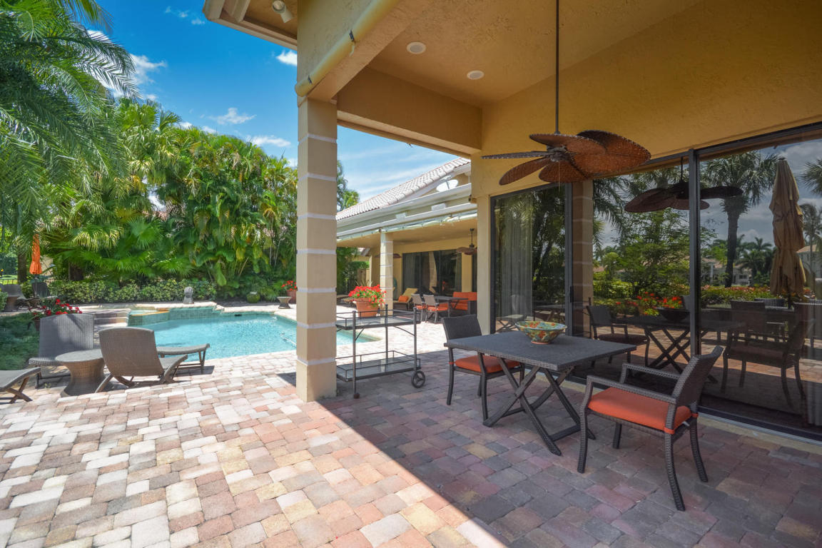 Elegant custom two story estate with dramatic formal living room, entertainment bar, formal dining room, chef's kitchen with center island and stainless steel appliances, opening to breakfast area and family room, spacious master suite and 2 additional bedrooms downstairs and library with rich wood details. Upstairs features loft sitting area and two guest suites. Outdoor entertainment area and resort style pool overlooking golf course view. The information herein is deemed reliable and subject to errors, omissions and changes without notice. All measurements are approximate.