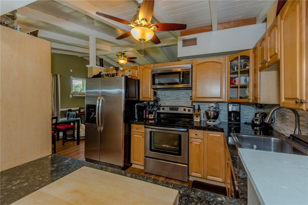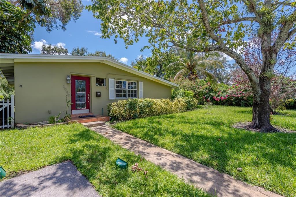 Welcome to Riverland community where you are just a short drive from highways, downtown & the beach. This home is move in ready & features 3 bds / 2 baths + a den * Beautiful vaulted ceilings with exposed wood beams * Lots of natural light * Laminate floors * Kitchen is open to a den & has stainless steel appliances & granite countertops * Separate laundry room with a storage* French doors from the den are leading to a spacious fenced yard with a patio* Newer roof * Sprinklers are on well. Priced to sell!