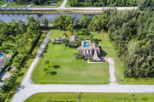 Welcome home... This Acreage GEM offers country living at its best!... Boasting a 4/3/2 main home, 2/2 guesthouse, superb yet quiet LOCATION, PAVED ROAD, CITY WATER and a spectacular heated, salt water courtyard pool. This well maintained home is bright and sunny with warm neutral colors throughout. Entering through the front door brings you into a fabulous open floor plan that overlooks the screened lanai, pool and 51 x 33 pool deck offering over a 1700 sqft of outdoor living space. Passing through you will discover a formal dining room, den, spacious family room with elegant wood burning stone fireplace, soaring 19' ceilings, expansive kitchen with granite, 42 inch cabinets galore, breakfast bar, pantry, Kenmore appliances, large 18'' tile and dining area. Entering the master suite