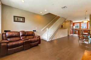 Spacious 3 story unit with one bedroom on the first floor and two on the third floor. GREAT POTENTIAL AS A RENTAL PROPERTY. The large kitchen has granite counters and plenty of cabinets. Upgraded tile throughout the whole second floor. The A/C and air handler were replaced in 2015, the refrigerator, washer and dryer are 3 years old, the dishwasher and microwave are 2 years old and the garbage disposal was just replaced. Impact windows throughout. Maintenance fees include internet, cable, water & sewer. The community offers numerous amenities including a lakefront pool, clubhouse, bbq area, gym with fitness instructor, yoga instructor, jogging track, movie theater and 24 hour manned gate & roving patrol. Great West Palm Beach location. Per HOA, pitbulls or aggressive breads