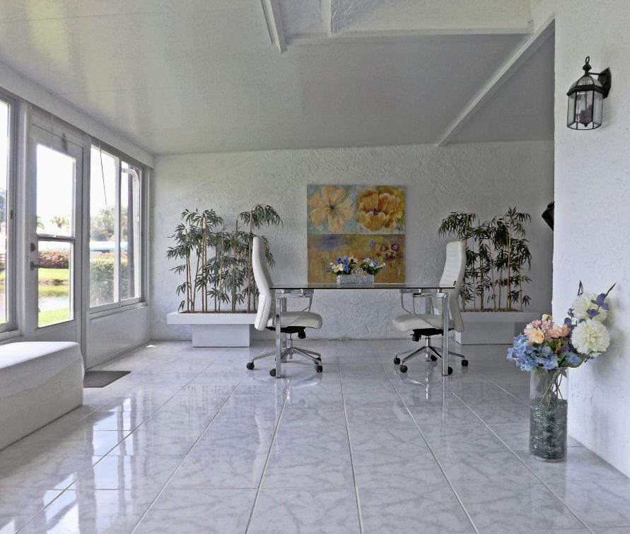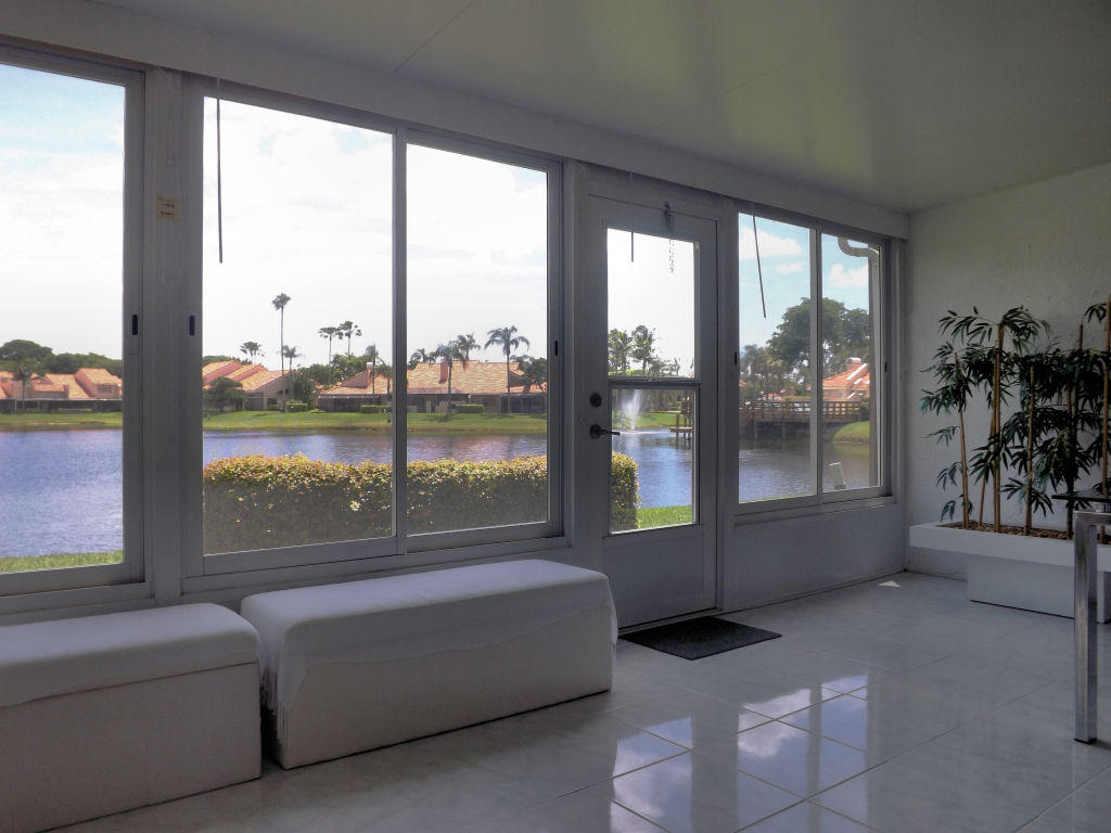 Location! Location! Location! Best wide panoramic lake views. Light and bright 3 bedrooms, 3 bathrooms. Large tile throughout living area, carpet in master and guest bedrooms. Additional 500 sq. ft. wrap around enclosed four season garden room with spectacular lake views that can be seen and accessed from living room as well as the kitchen. Additional balcony off the master suite to sit outside and enjoy lake view. Redone kitchen with new oven. Dishwasher and refrigerator replaced approximately 5 years ago. High ceilings, crown molding, and new baseboards. Large walk in closets in all bedrooms. There is one bedroom downstairs and 2 upstairs. A/C approximately 8 years old. This townhome has a wonderful use of space and is in wonderful condition.