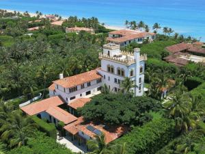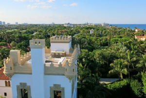 One of the most spectacular homes ever offered in Palm Beach that perfectly combines original classic architectural with all of the amenities of a modern estate. Located on the of the famed 3 ''El'' streets just steps south of Worth Ave. The Main Tower is 5 stories tall and encompasses two master bedrooms, one of which spans the entire 3rd floor of the house, a library and bar with ocean to lake views, a roof top observation deck and bar, and a living room with the original rare Cuban tile floors (black and blue), walk-in fire place mantel, and cypress beams & ceiling with stenciling. The entire house has been updated with custom hurricane impact doors & windows, new bathrooms, Smart lighting system, and a kitchen that opens to a casual eating area and family room. The gardens were