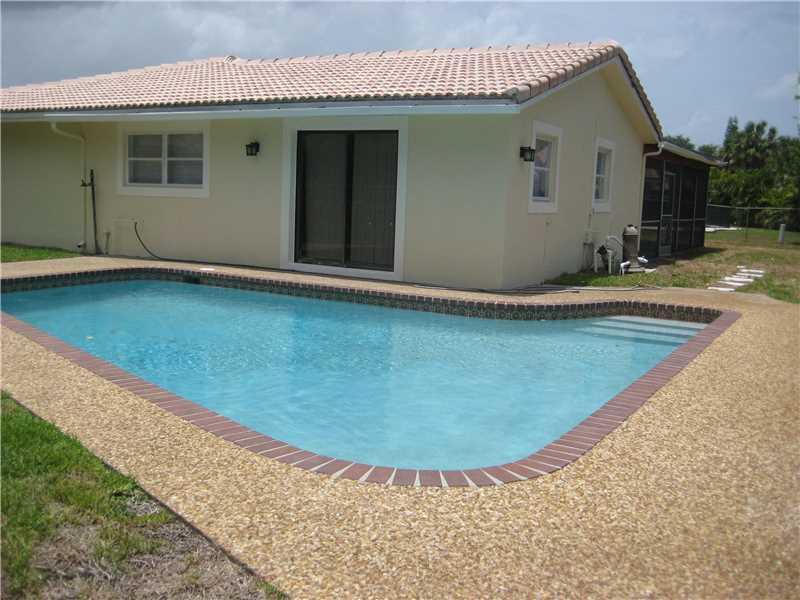 This beautiful 1 story home is located on a quiet cul-de-sac in Coral Springs. Oversized lot. Shows like a model! Fully remodeled. Split floor plan. Great layout with lots of natural light & windows. Huge open space enters living/great room. Kitchen featu res real cherry wood cabinetry/ granite countertops/backsplash/island. French doors from kitchen & dining lead to large screened patio. Big fenced yard w/pool. MUST see attached Features List; Newer roof. New SS appliances. Walk to the park! No HOAs.