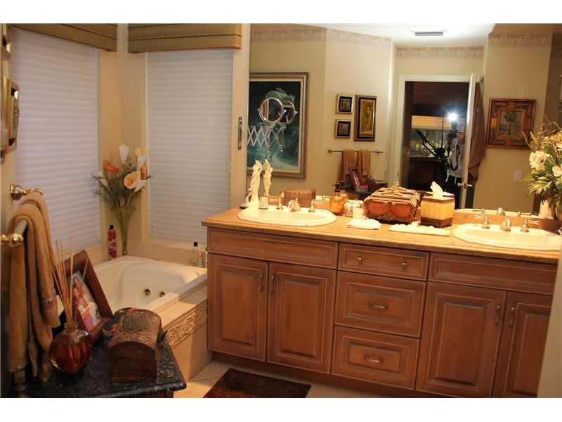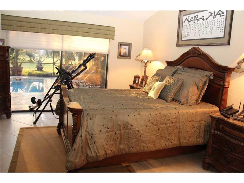 3/2 Turn Key master piece SFH located on Lakes course 2nd hole. Interior property feat. include: Diag. tile throughout, Custom wood kitchen/granite, Sub-Zero Refrigerator, wine chiller, new LG wash-dryer w/base, high ceilings w/knock down finish, custom p ainted interior, custom draperies & closed circuit cameras throughout. Ext. features include: Newer S-tile roof, mahogany over sized front doors, lg. stamped driveway, new A/C, 16ft retract pool shade, $25k IN landscape lighting & storm shutters. + more.
