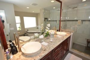 Beautiful, renovated, contemporary 3-bedroom + loft/office home on a private corner lot. Light and bright, this lovely home features a custom kitchen with granite countertops, cherry wood cabinets, and stainless steel appliances. The kitchen is open to the family room and breakfast area which are enhanced by the huge windows and sliding glass doors providing access to the well-landscaped pool, spa, and patio areas. The downstairs floor plan also includes a spacious living room and dining area. The upstairs features cherry wood floors throughout the master suite, two guest bedrooms, and a loft/office area. This home is immaculate, meticulously maintained, and ready for move-in! Furniture is negotiable.