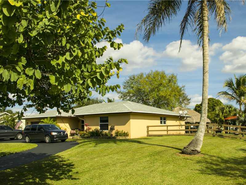 MUST SEE THIS UNIQUE, ONE OF A KIND, NO HOA, DAVIE ACREAGE HOME WHERE 4 LIVESTOCK (i.e. HORSES) ARE PERMITTED. BACKYARD IS AN OASIS WITH PALM TREES--HUGE TIKI HUT AND A SPECIAL PLACE JUST FOR GRILLING. AS YOU WALK INTO THIS HOUSE, YOU CANNOT HELP NOTICING THE MARBLE FLOORS THROUGHOUT AND THE KITCHEN THAT IS A WORK OF ART WITH STAINLESS STEEL APPLIANCES, EXQUISITE GRANITE & DESIGNER KITCHEN CABINETS. ENTERTAINING IS A DELIGHT! FEELS LIKE YOU ARE ON A PERMANENT VACATION. ALSO, IMPACT WINDOWS. COME SEE!