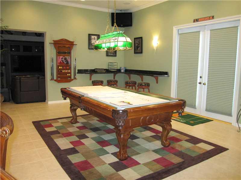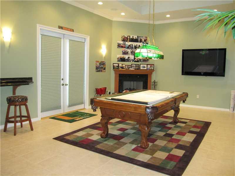 Gorgeous home in Grand Reserve, 24 HR Guard Gated Community w/Clubhouse, Pool, Fitness Center, and Tot Lot. Home features 4/3 PLUS den/office in Master Bedroom. Large family room, & HUGE game room. Kitchen has granite countertops, island, double ovens. Game room has built-in wet bar w/keg and gas fireplace. FR features custom AVEX wall unit w/5 TV's & surround sound. Volume ceilings (no popcorn), crown molding, paver driveway & patio. Exterior just painted & landscaping updated.