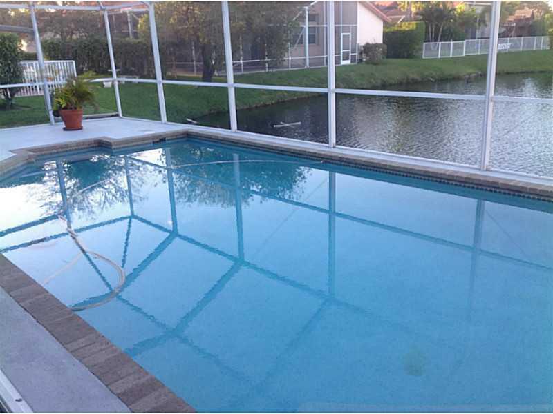 The Enclave at Jacaranda Lakes gated community. Spacious lake front pool home features include 4 bedrooms 3 full bathrooms, 2 car garage, formal dining room, seperate breakfast room, large kitchen with island, family room, living room and large master sui te. All common living areas have high vaulted ceilings, pool and lake views. Accordian shutters all around the home. Will need some updating. Excellent location, convenient to Fort Lauderdale, Miami and Palm Beach County. Close to Central Park.