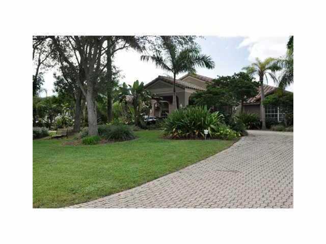 Private Resort Living: 5/4.5 estate home with three car garage, portico paver covered driveway. This beauty has Bamboo and tile floors, upgraded granite kitchen, crown molding, a study, wet bar, formal dining, separate living and family rooms. Exterior f eatures a private lighted tennis court, heated salt system Pebble Tech Pool, large screened patio with designer pavers, hedge and fenced yard, pet area or garden area. Premium neighborhood, magnificent yard 1.24 acres of privacy.
