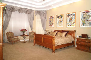 This beautifully appointed estate home sits on over 1 acre. The extensive paver driveway leads to a welcoming entry with glass etched double doors and a 4 car garage. Once you enter the home your welcomed with 20'' Porcelain floors, an elegant living and dining area with custom built in wall unit that includes a real wood fireplace, High coffered ceilings, crown molding and recessed lighting. The gourmet kitchen offers 42'' white real wood Cabinetry, Kitchen Aid S.S. Appliances, Double Oven, GE Profile Cooktop, 90/10 Sink, Pantry Cabinets, Granite Counters and Under Cabinet Lighting. The oversized family room offers a custom wall unit included, surround sound, custom built wood bar, french doors and breakfast nook with bay window.