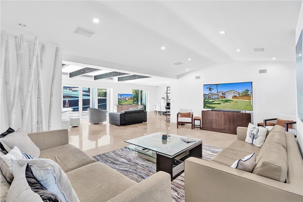 This 5 bedroom 4.5 bath plus 2 offices/den estate sits on 80’ of waterfront with no fixed bridges and ocean access. Extensive renovation in 2012. Impact windows and doors. Marble flooring throughout living areas and wood flooring in bedrooms. Grand open living spaces with vaulted ceilings in the living room and the family room has beautiful wood beamed ceilings and wet bar. Gourmet kitchen features quartz countertops, wood cabinetry, stainless steel appliances and center island. Second level master wing boats large master suite, expansive walk-in closet with built-ins, spa like bath and office/sitting area. Spacious secondary bedrooms. Outdoor living with gazebo, saltwater pool, and tranquil water views. Property located at the end of Seven Isles Drive with little thru traffic.
