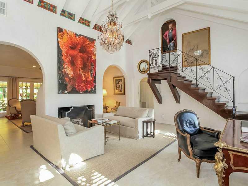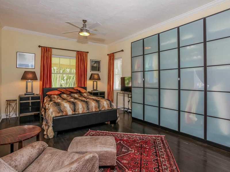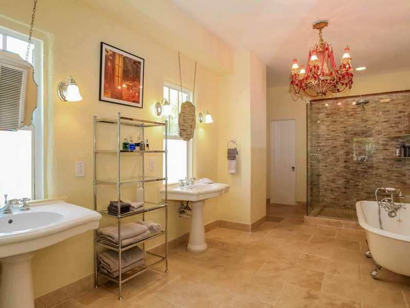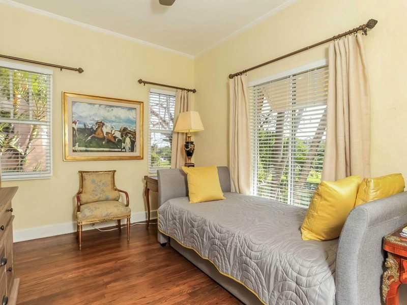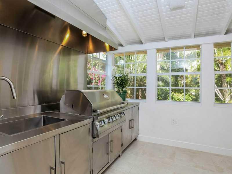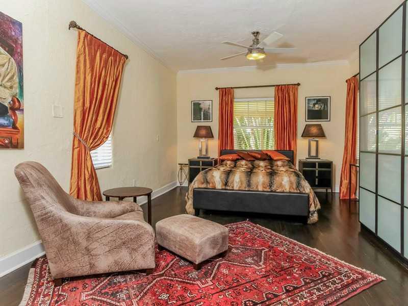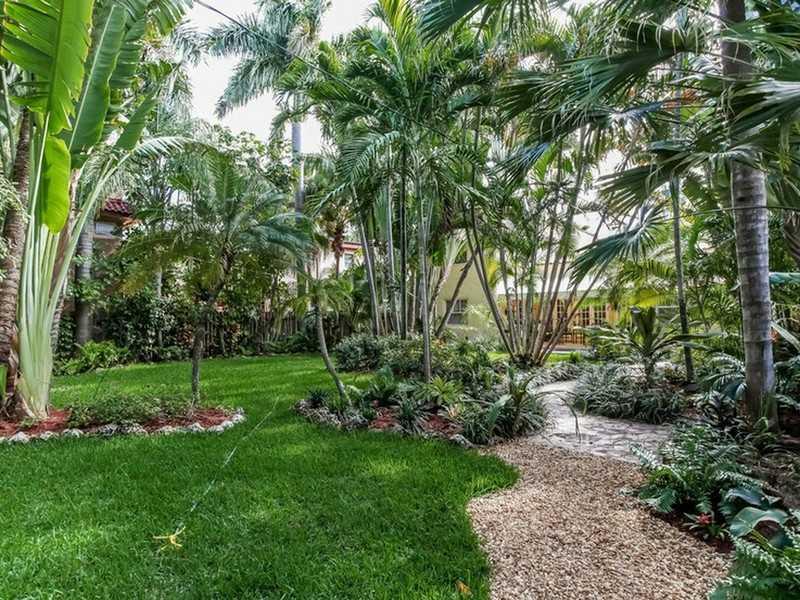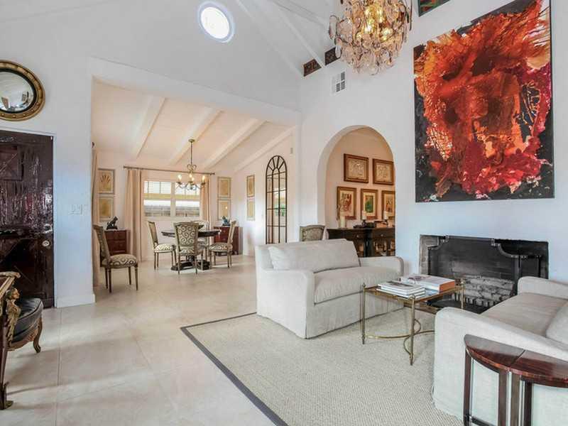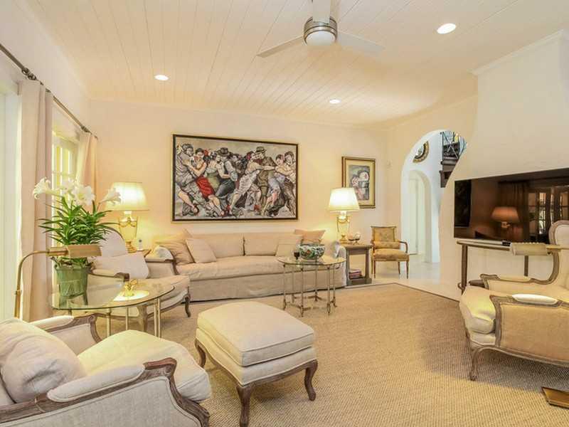 Impeccable Mediterranean revival with soaring cathedral ceilings compliment a flowing layout of living, dining, & family rooms leading to a spacious patio with summer kitchen & lush tropical gardens. Large master bedroom en-suite is located on the second level as well as a 2nd bedroom. 2 bedrooms are located ground level with a large bathroom to share. The 5th bed/guest quarters has a private entrance. New par 3 golf course directly across the street. Walking distance to Lincoln Rd & beaches.