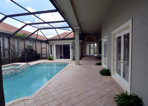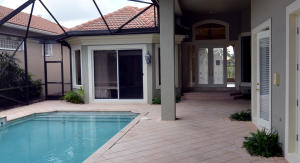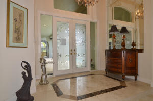 BEING SOLD TURNKEY WITH BEAUTIFUL NEWER FURNITURELovely 4 bedroom/4 bath court yard home with pool & spa overlooking golf course & water view. (New pool heater). Many upgrades/24'' saturnia marble floors, sunken bar in L.R., new carpeting, recently painted inside home, kitchen with granite counter & newer air conditioner in guest home. Extensive moldings & double coffered ceiling.Great Value for Monte Verde!