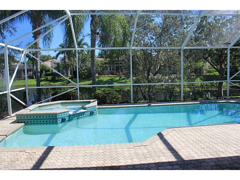 Listed below $26k of BCPA Value ! Upgraded pool water front home in sought after heronbay. Gorgeous new all wood designer kitchen with all soft closing cabinets, upgrades, nice back splash. Beautiful counters, new appliances, huge pantry. Volume ceilings openlayout bright. New flooring. Huge master suite. 4 beds plus den can be playroom, office or enclose to use as 5th bedroom. Screened spacious pool patio area with spa. Nice water views. Great curb appeal. Awesome Heronbay amenities. Great schools.