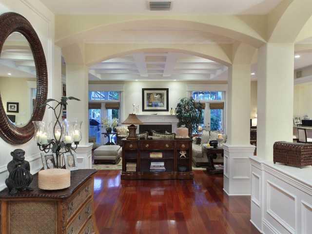 Influenced by tropical & casual elegance of British Colonial architecture this extraordinary & immaculate custom offering features open formal & flowing living areas.Warm Brazilian wood floors,coiffered ceilings,hand-crafted millwork & extensive built-ins , designer decorated interiors.Gourmet kitchen open to family & breakfast rooms.Ultra luxurious master wing with private balcony,VIP guest suite,all bedrooms en-suite,room to expand residence,3rd floor recreation room.Resort style pool.Walled & gated.