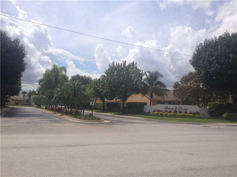 GREAT HOME ON DOUBLE LOT IN BOCA TRACE! 3 BEDROOM, 2 BATH WITH 2 CAR GARAGE, ALL TILE AND LAMINATE FLOORS, SCREENED PATIO PLUS OUTSIDE PATIO. HOUSE IS SITUATED ON A DOUBLE CORNER LOT WITH MATURE LANDSCAPING. SPACIOUS EAT IN KITCHEN. NEWER FRONT LOAD LAUND RY. LARGE MASTER SUITE WITH DUAL SINKS, LARGE WALK-IN CLOSET. SMALL HOA COMMUNITY WITH CONGENIAL NEIGHBORHOOD POOL. BASIC CABLE IS INCLUDED IN MAINTENANCE FEE. GREAT SCHOOLS AND CONVENIENT TO TURNPIKE AND TONS OF SHOPPING. HURRY ON THIS ONE.