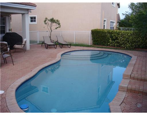 Gated community of Vizcaya! All "A" rated schools & .5 mile from Sawgrass Expwy. Corner lot. Beautiful kidney-shaped pool (baby gate) & covered patio. Laminate floors on stairs & 2nd story. Custom office & laundry upstairs w bdrms. Accordion shutters on 2 nd story. Low HOA fees ($200) includes grass, cable, community pool/clubhouse w gym & alarm. Great neighbors! Breakfast area in open kitchen. Huge master bath with tub & shower, double sinks in both baths. Split family room, brick paver drive & pool deck.