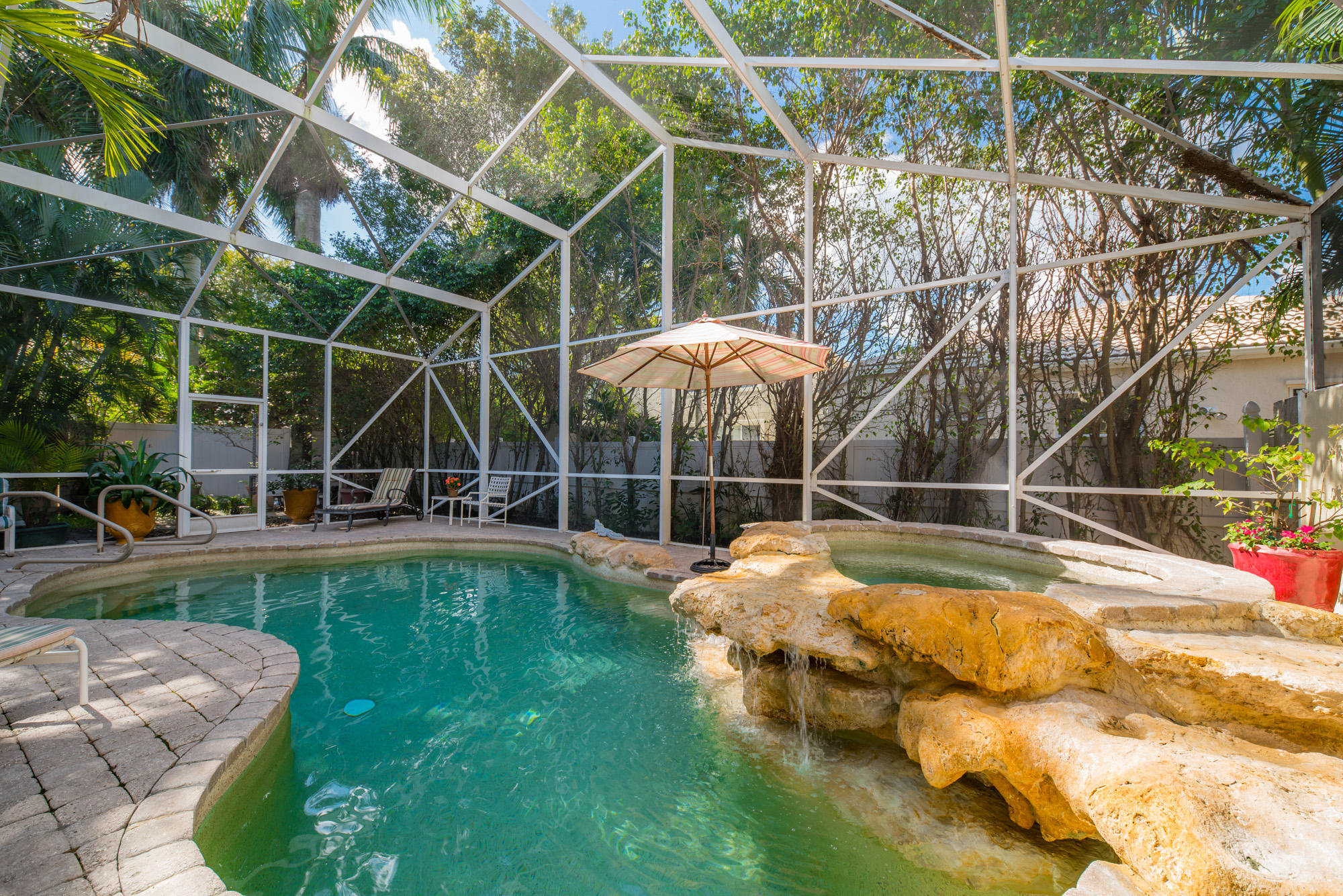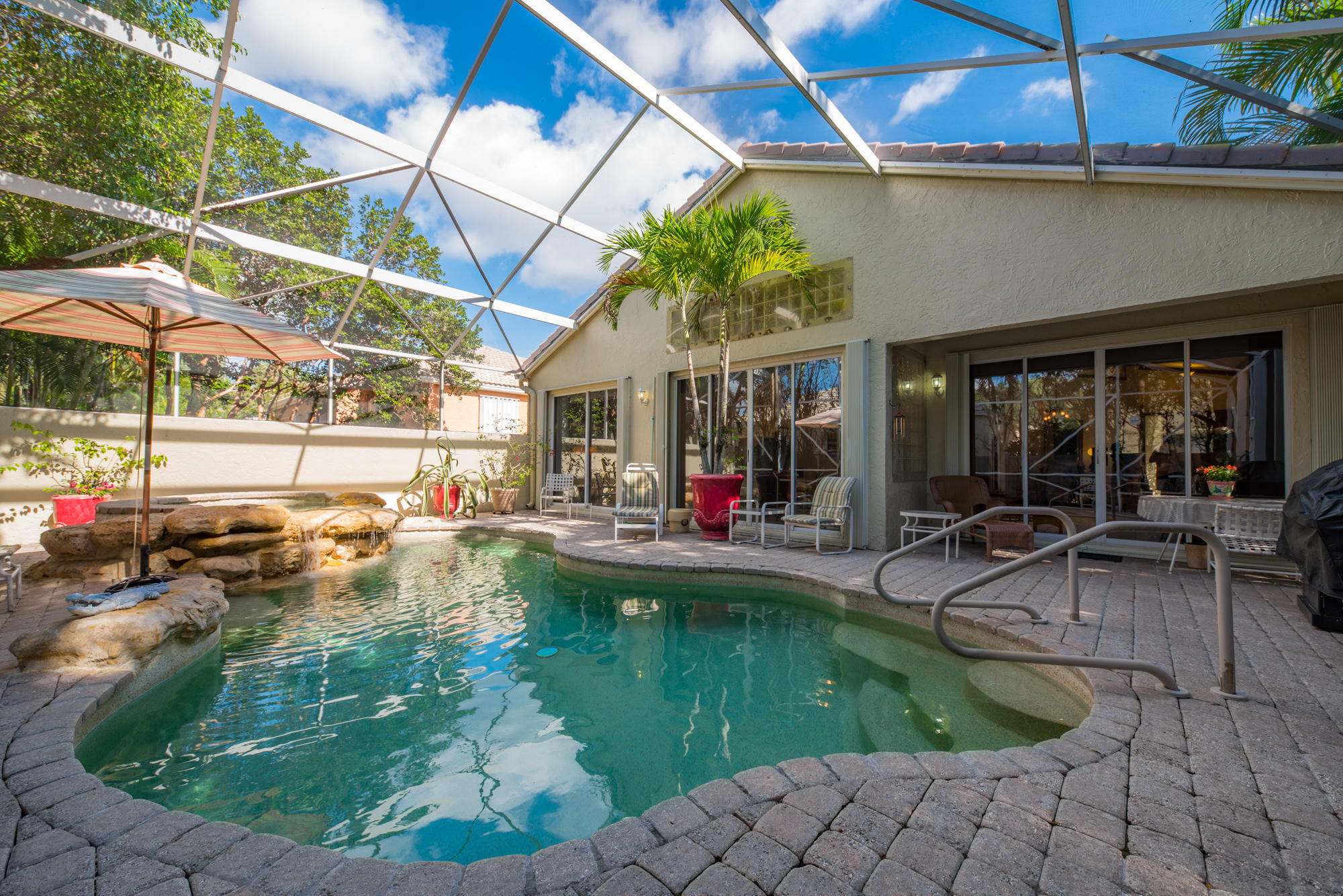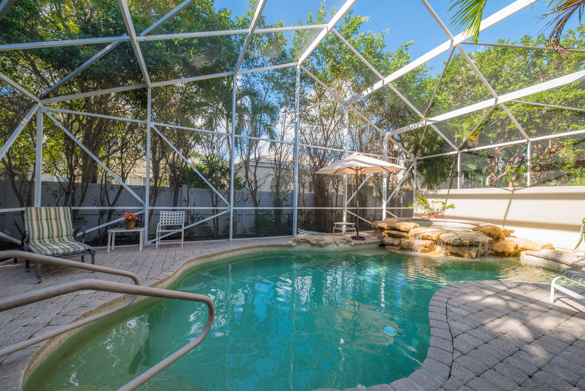 This Bear Lakes home has so much to offer. Sitting on a corner lot, the thick, natural hedging and fence create a private oasis. The 4-bedroom house has a split plan with the master bedroom, living and family rooms opening to the lush screened pool, where the water fall and spa create the perfect escape. The beautiful salt water pool features a Jandy remote control system and surge protector, a variable speed pump, Pebble Tech surface and paver deck. The screen enclose was installed after the 2004/5 storms and matches the high open feeling of the house! The high vaulted ceilings inside create a feeling of space that make the home feel much bigger than you could imagine. The floorplan affords a nice flow between the living areas while still preserving the separation of a much larger home.