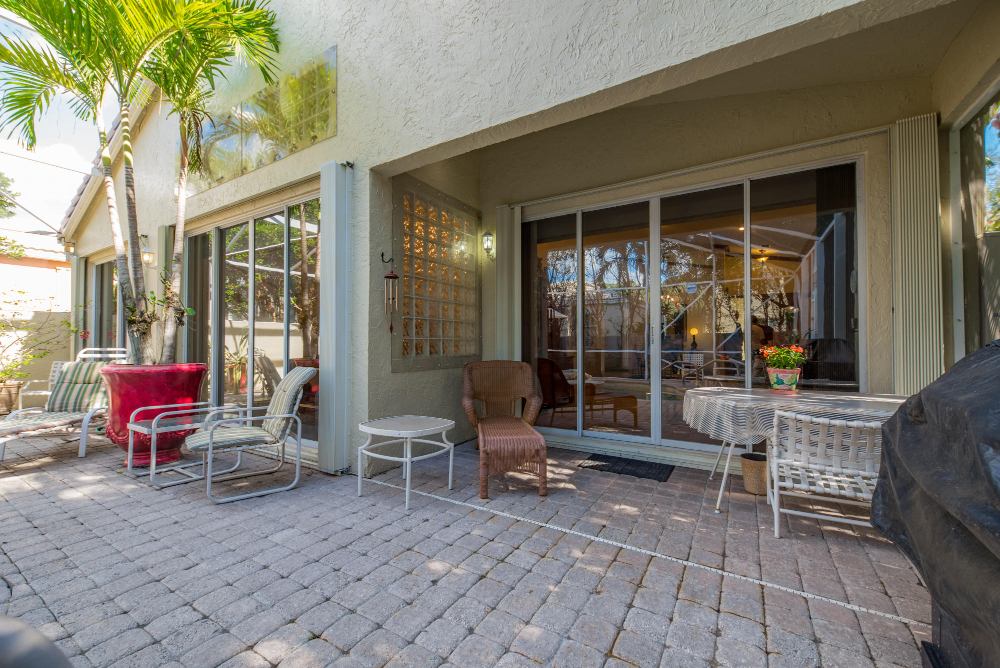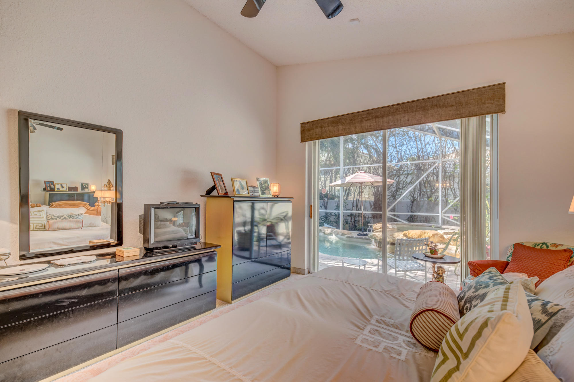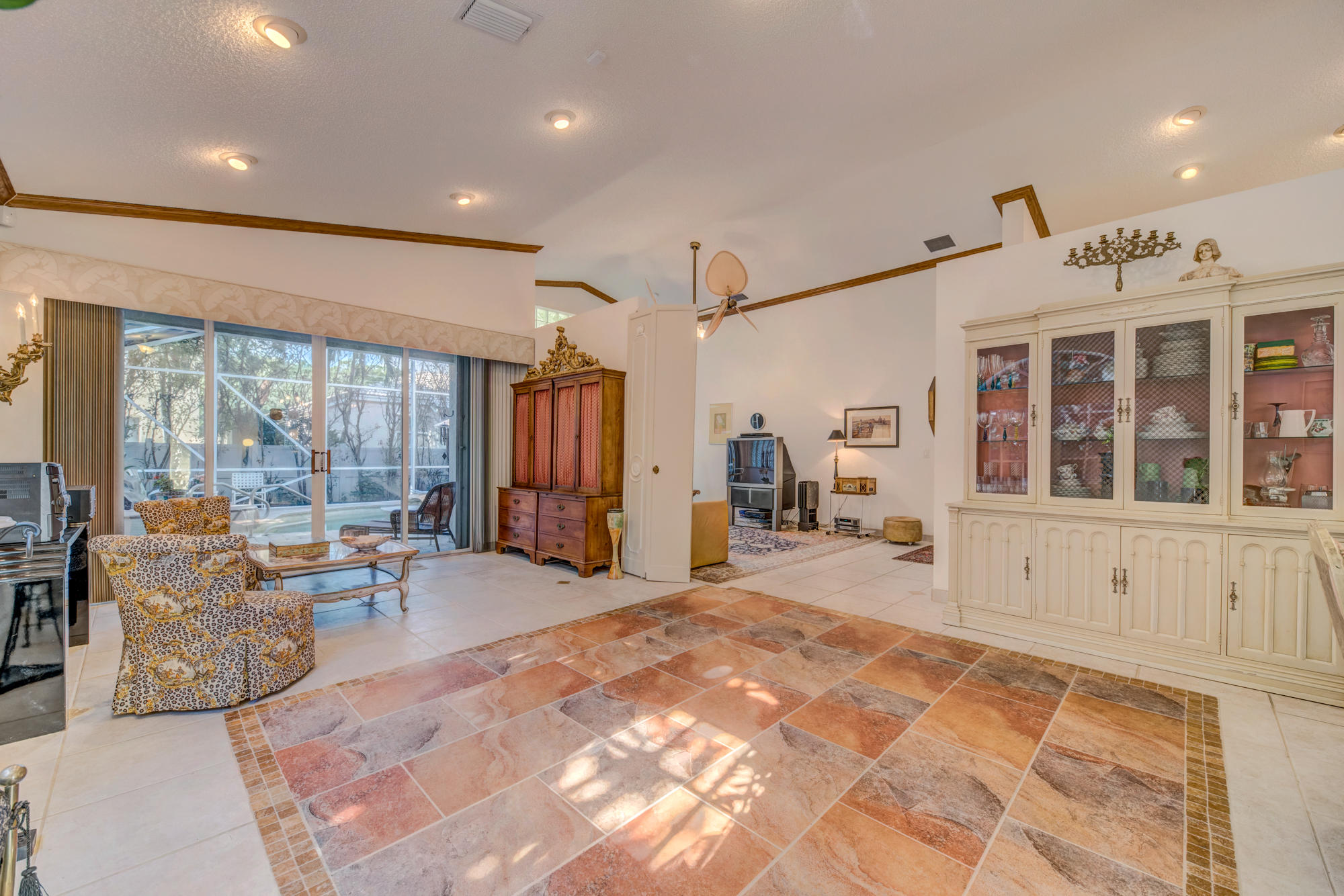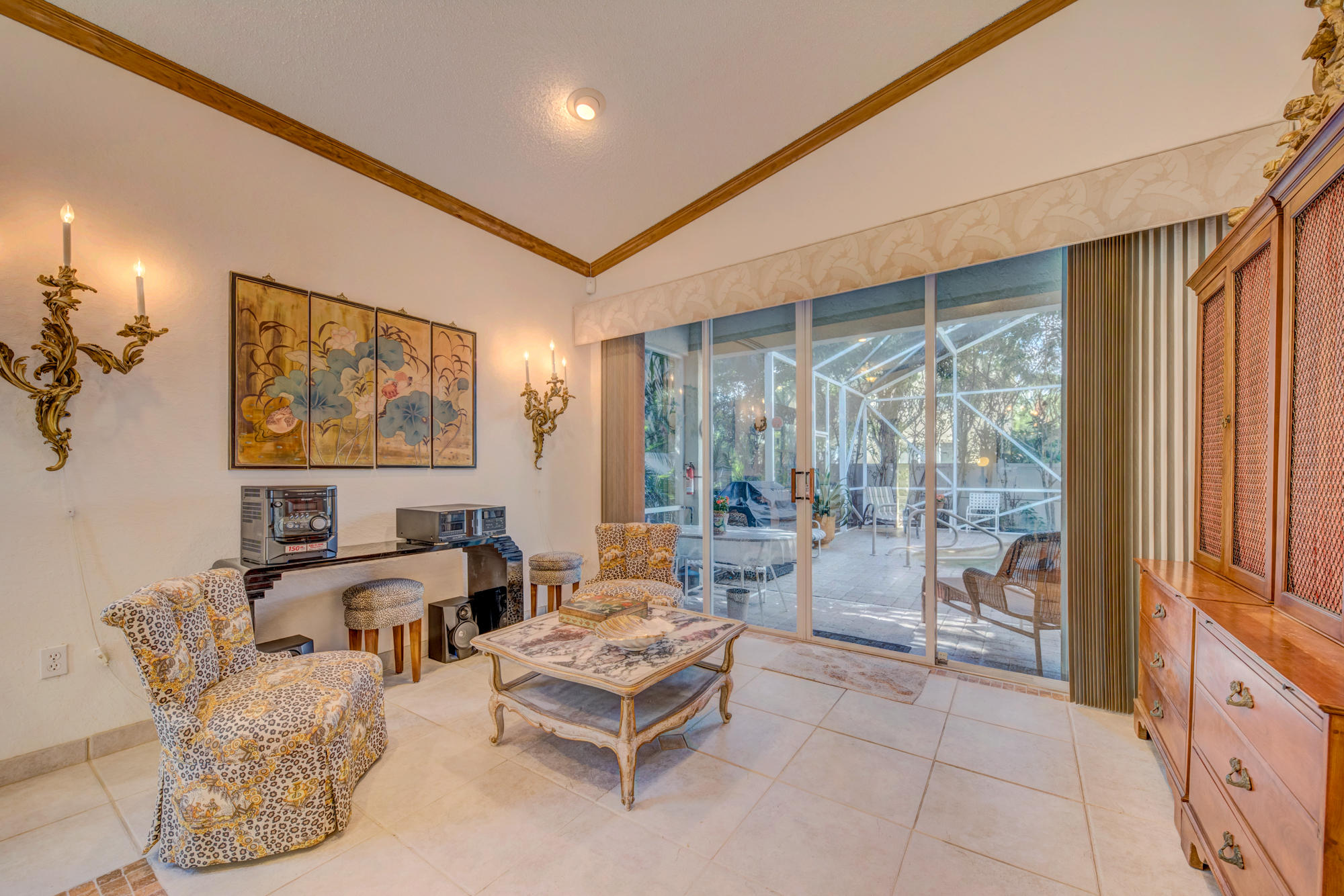 This Bear Lakes home has so much to offer. Sitting on a corner lot, the thick, natural hedging and fence create a private oasis. The 4-bedroom house has a split plan with the master bedroom, living and family rooms opening to the lush screened pool, where the water fall and spa create the perfect escape. The beautiful salt water pool features a Jandy remote control system and surge protector, a variable speed pump, Pebble Tech surface and paver deck. The screen enclose was installed after the 2004/5 storms and matches the high open feeling of the house! The high vaulted ceilings inside create a feeling of space that make the home feel much bigger than you could imagine. The floorplan affords a nice flow between the living areas while still preserving the separation of a much larger home.