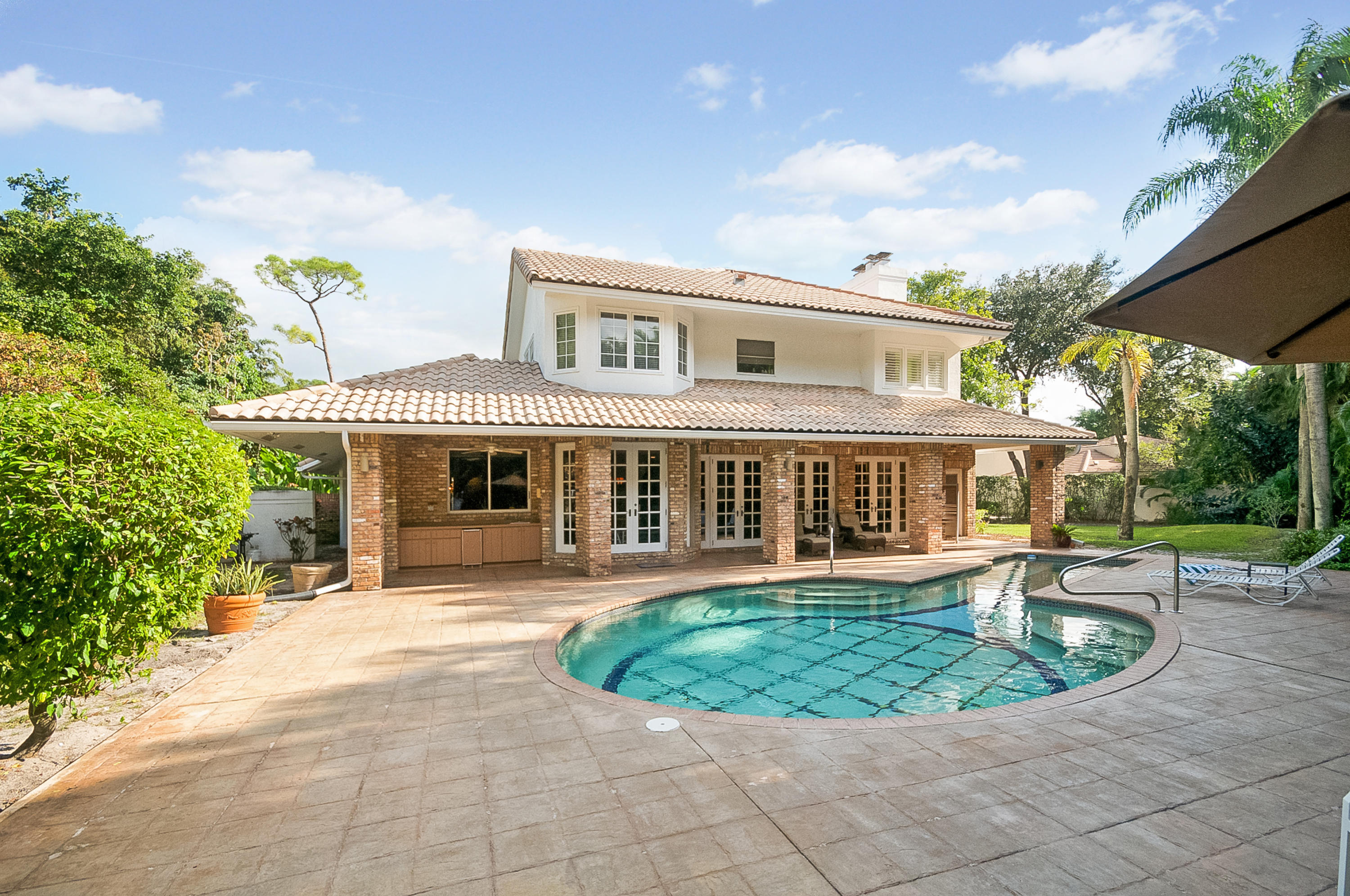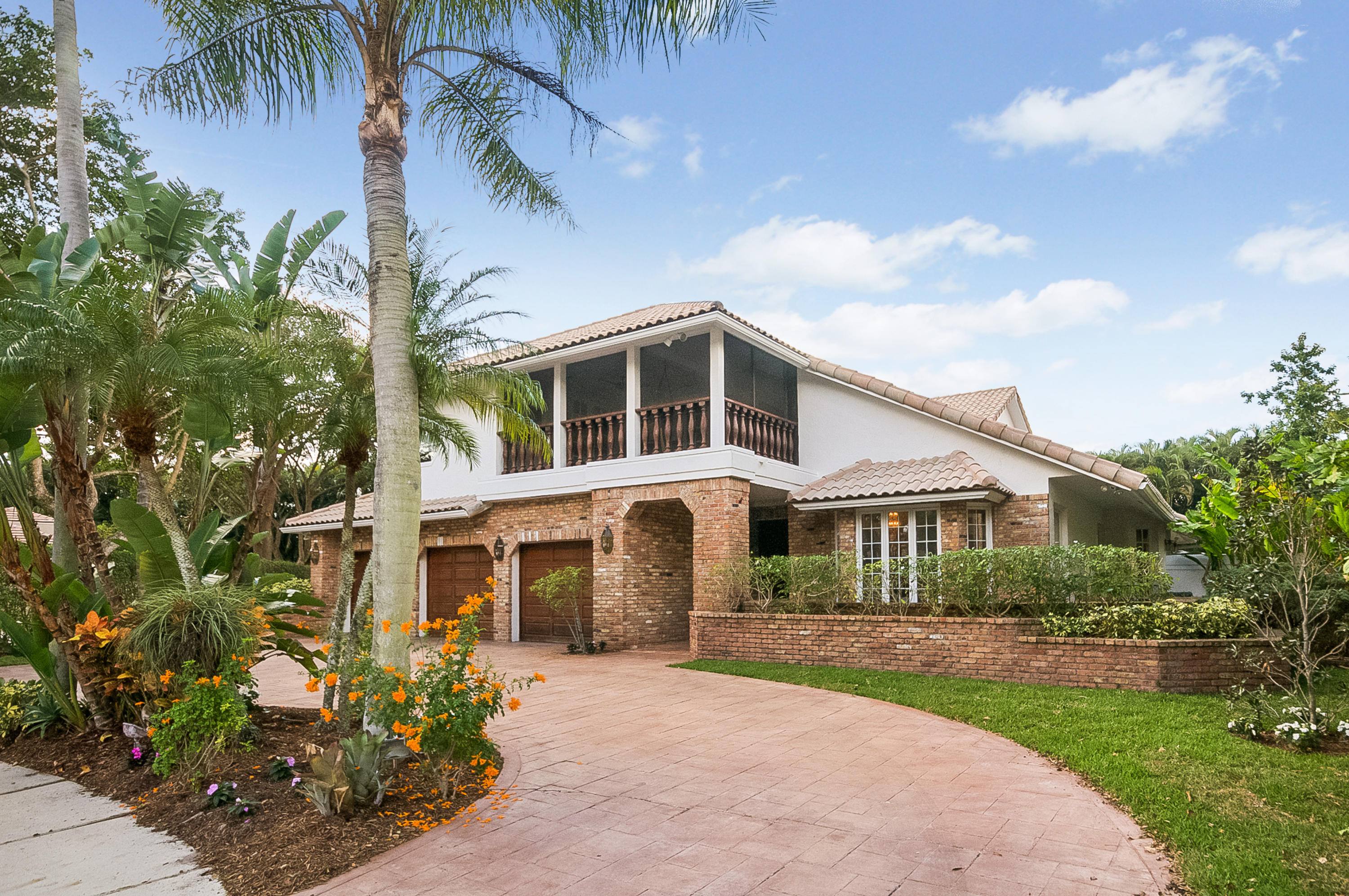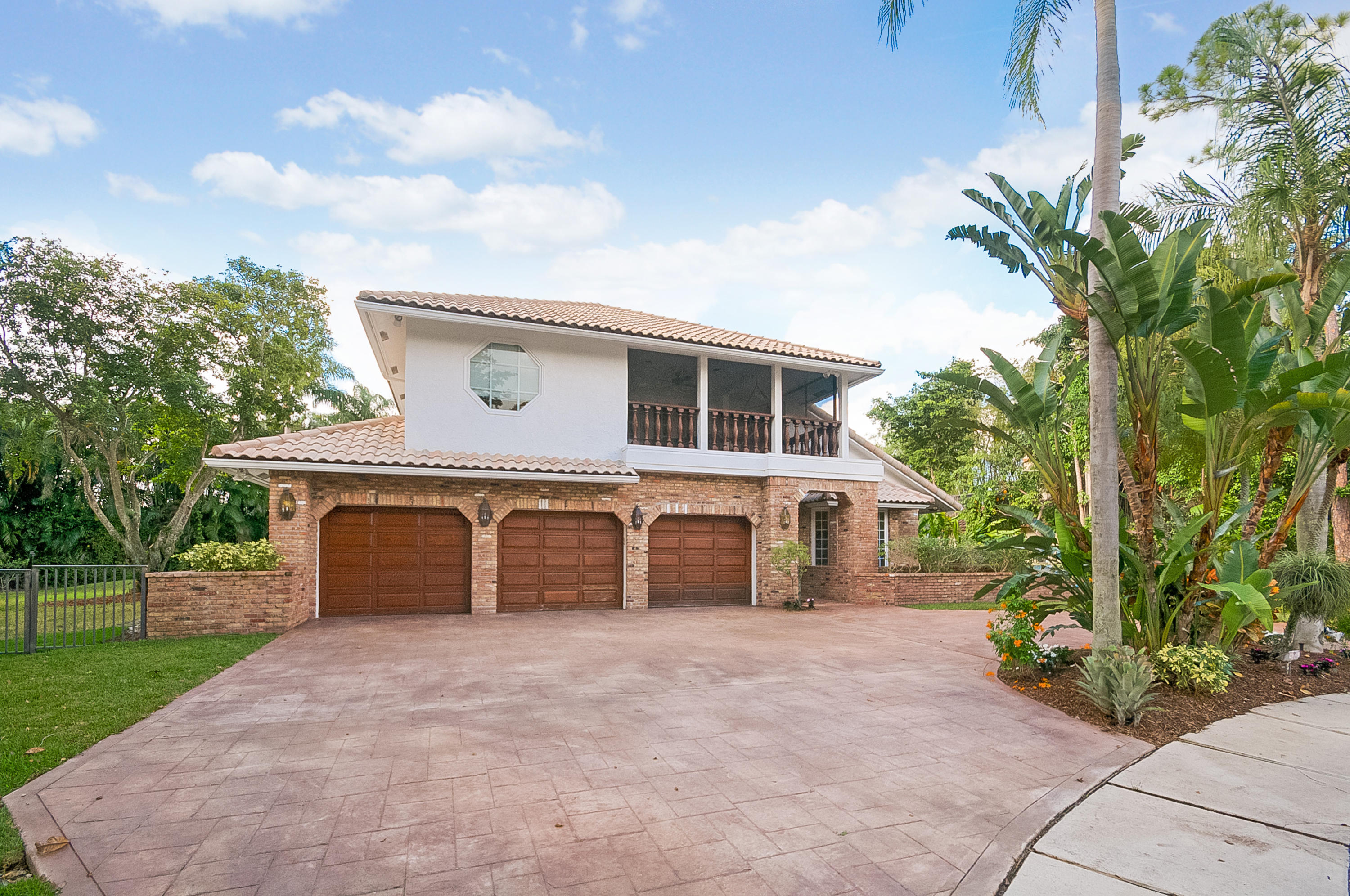 This unique 4BR,2 Full,2 Half bath custom home is ideally situated on an oversized interior lot in the center of Woodfield Hunt Club. Features include a spacious open floor plan, cul-de-sac location, casement windows & French doors, hardwood flooring, volume ceilings & generous room sizes. Closets galore & 3 car garage! The kitchen has stainless steel appliances, granite counters & a picturesque view of the private backyard, filled with palms, fruit trees & tropical plants. The master BR & 2 additional bedrooms are located on the 2nd floor, plus 2 baths. The 4th BR is on the ground floor & is used as an office/den.Come see this beautiful home in one of Boca's best neighborhoods with top rated schools & easy access to FL Tpk & I-95. Membership to Woodfield CC avail, but not mandatory.