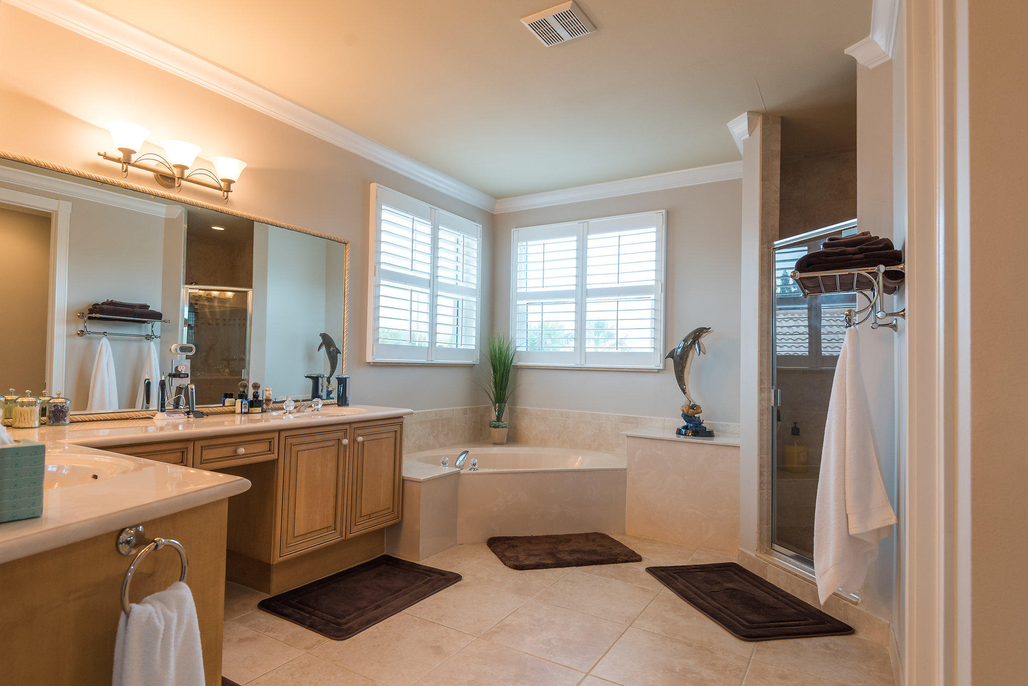 Stunning dream home in the heart of West Palm Beach! Over $150k of upgrades! This windward II model home boasts lots of natural light and high ceilings with Briar Bay's coveted largest floor plan offering 3860 sqft, 5 bedrooms, 4 full bathrooms, 3 car garage, and large den upstairs perfect for kids play/rec room. Move-in ready with fresh paint, new 2015 AC units, new hardwood flooring, all new hurricane impact windows and doors, crown molding throughout, plantation shutters, upgraded kitchen cabinets, granite counter tops, and stainless steel appliances. Master has his & hers walk-in closets closets and large en-suite bathroom and sitting/exercise nook. The backyard is an entertainer's dream with all new travertine pool deck, stunning pool, full outdoor kitchen, and fully fenced backyard.