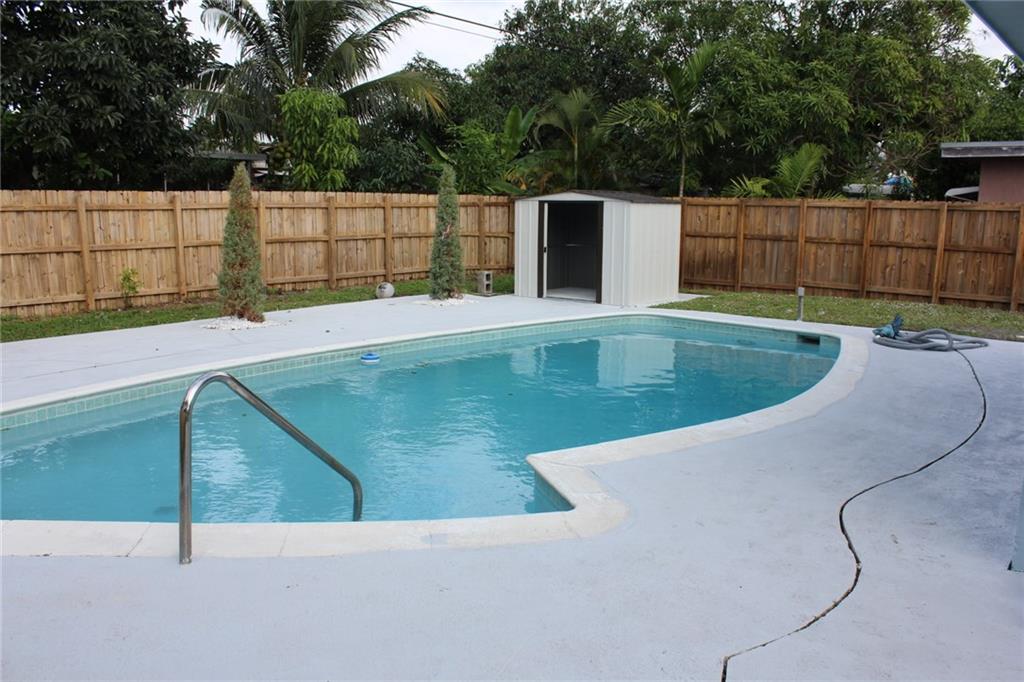 Just renovated and ready for you! Beautiful 2 bedroom 1 bath with a pool. New or near new kitchen appliances including SS refrigerator and microwave - oven. Home has central air. All tile and wood floors. Kitchen and bath have been upgraded. Florida or Family room with magnificent pool view. All new fencing around newly landscaped yard. Exterior shed. Wonderful pool. Great home!