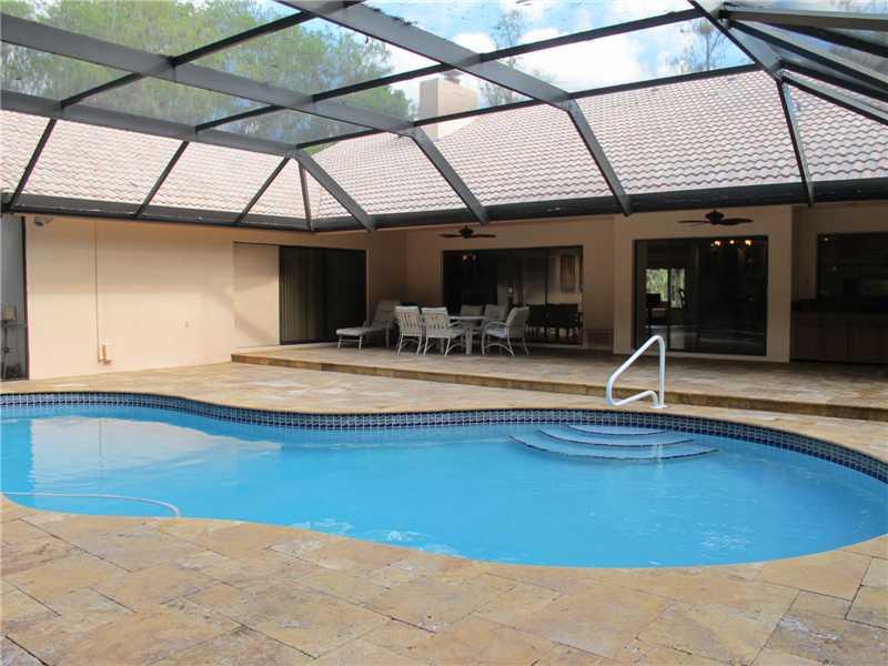 Beautifully remodeled 1.25 acre cul-de-sac estate backing to a wood Preserve. Travertine marble back patio & pool deck w/ screened salt water heated pool. Beautiful remodeled kitchen featuring wood cabinets, Silestone counter tops, stainless appliances (B osch dishwasher & oven). Pass through to summer kitchen w/ Jennair grill. Brazilian cherry wood floors in master, living & dining rooms. Wood burning fireplace in Family/Great room. Master bathroom w/ Jerusalem stone floors & gorgeous new wood vanities.