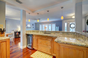 Welcome home! Come see this move-in ready 4 bedroom, 2 bath, 2 car garage pool home on a quiet circle street. Entertain with an open layout, beautiful wood floors throughout most of the house, crown molding, plantation shutters in every room, and a huge custom kitchen with granite countertops, wood cabinets, an instant hot water heater, wine cooler and Kitchen Aid stainless steel appliances including an oversized refrigerator and freezer. Outside, enjoy a pavered and covered patio with an inviting salt water pool and private backyard with buried powerlines. Stay safe with full hurricane protection. All measurements are approximate. Buyer, please verify.